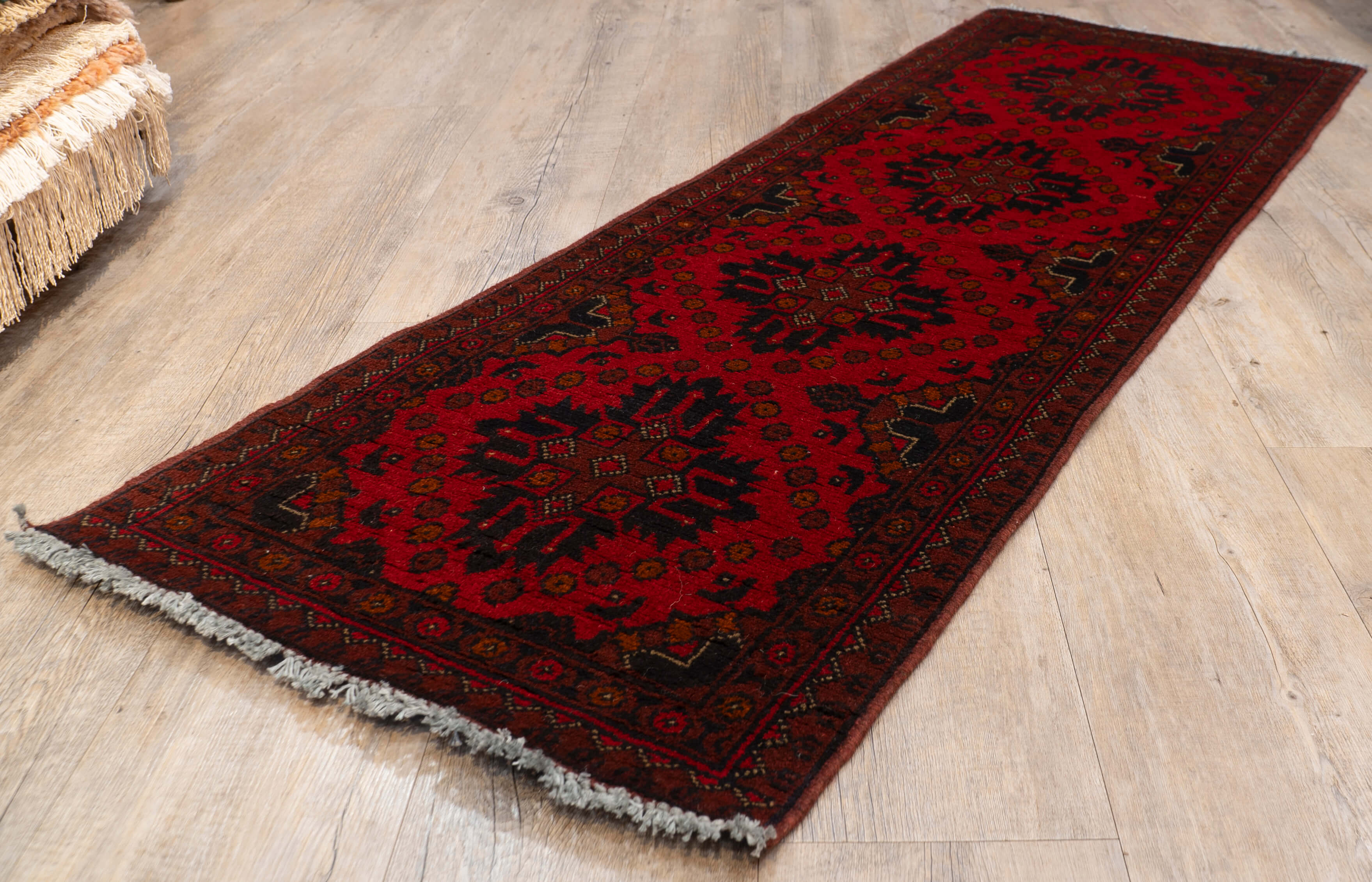 Handcrafted in northwest Afghanistan by skilled artisan weavers, this Afghan Khal Mohammadi short runner showcases traditional techniques passed down through generations. Made from handspun, vegetable-dyed wool, it offers both durability and practicality, making it ideal for high-traffic areas such as short landings or hallways. Combining authentic craftsmanship with excellent value, this runner brings both cultural heritage and lasting quality to your home.