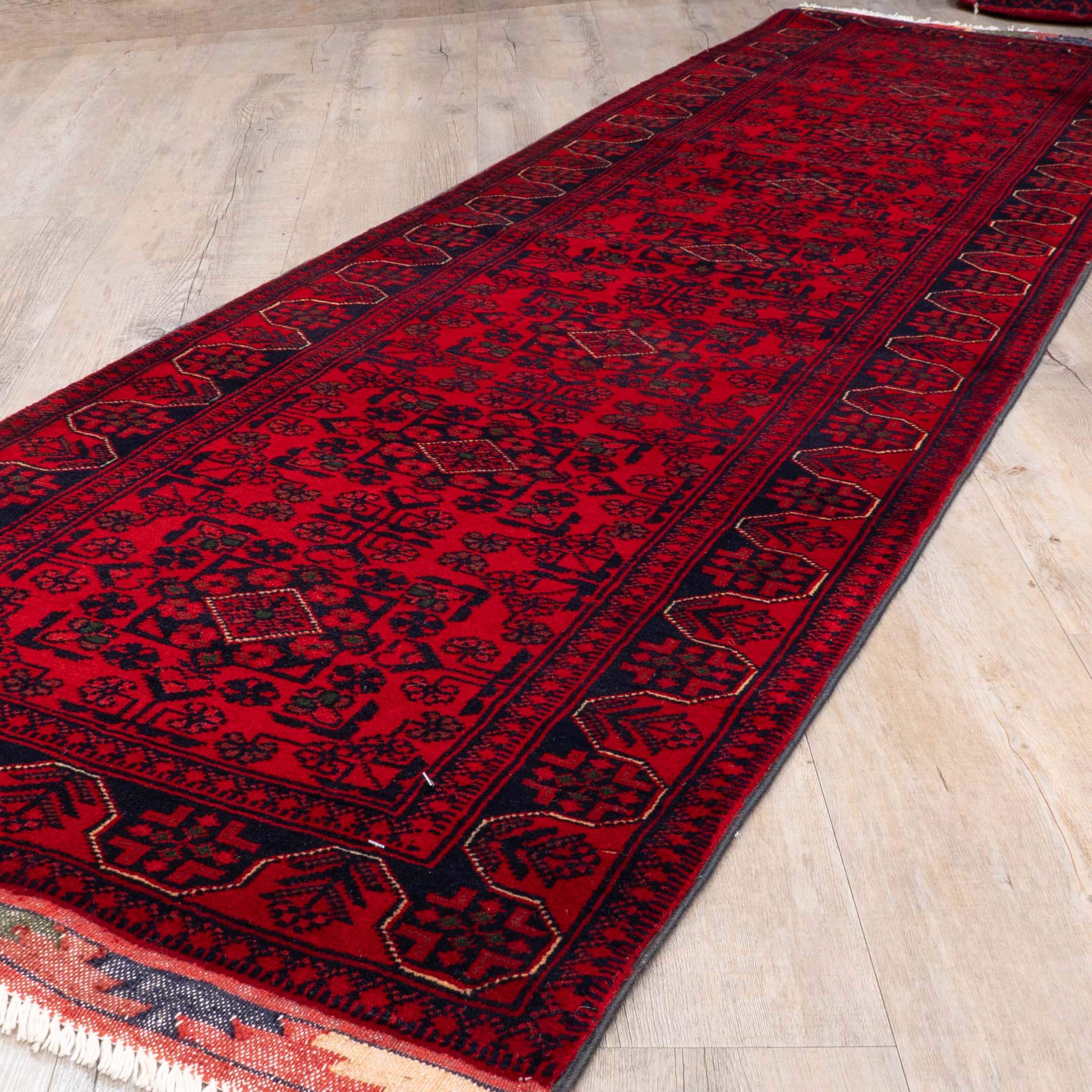 Expertly crafted by traditional artisans, this handmade Afghan Kunduz rug is a testament to the enduring beauty of wool dyed with natural vegetable dyes. Using the madder root, it boasts a rich red colouring and a captivating all-over pattern. Additionally, with intricate work on the ends, it's both beautiful and hard-wearing, making it practical.