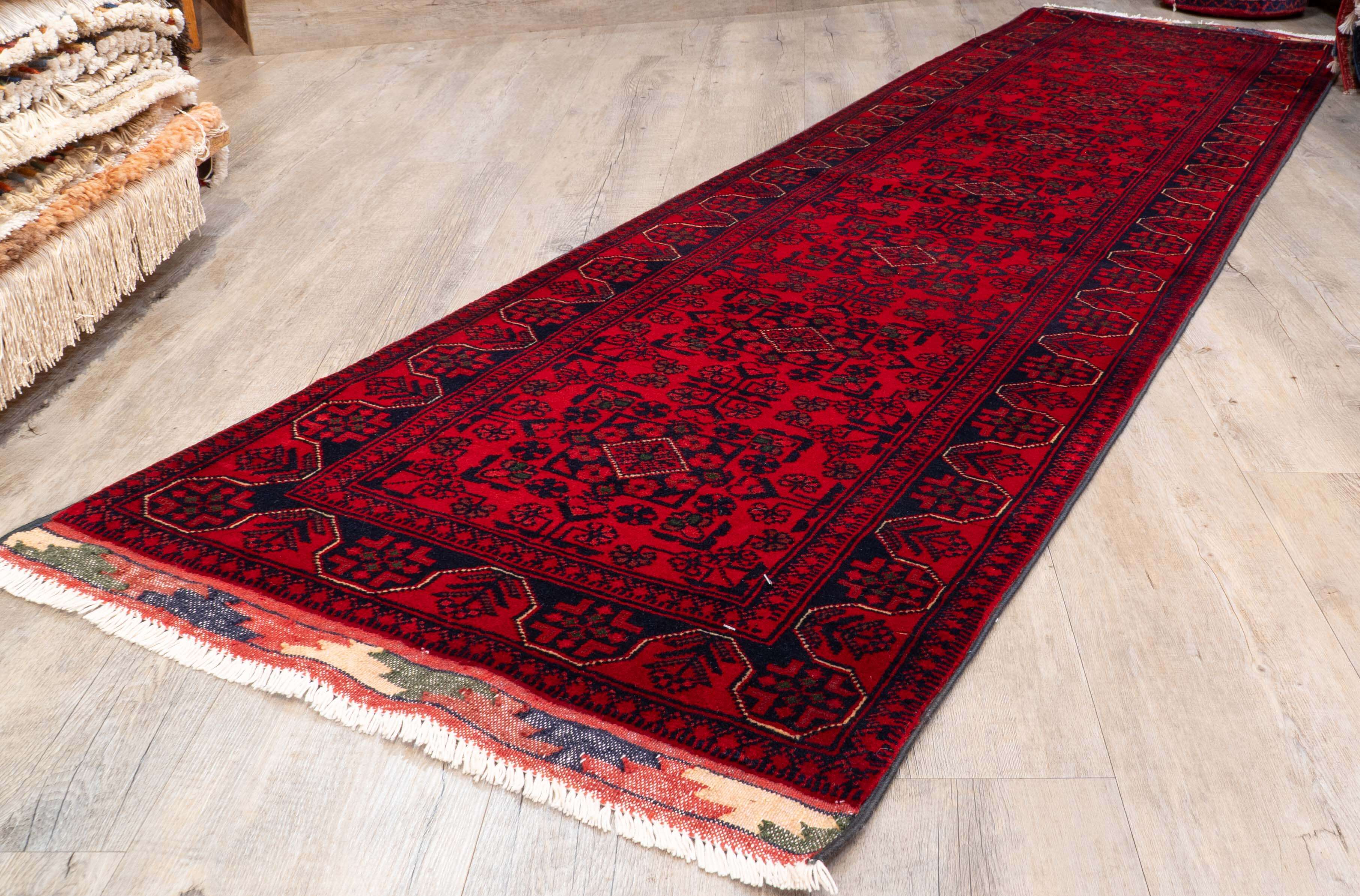 Afghan Kunduz and Afghan Khal Mohammadi rugs may occasionally look quite similar. However, the Kunduz are generally finer-knotted and have more intricate patterns. Both rugs use the same madder plant to produce the vegetable-dyed wool that is highly durable.