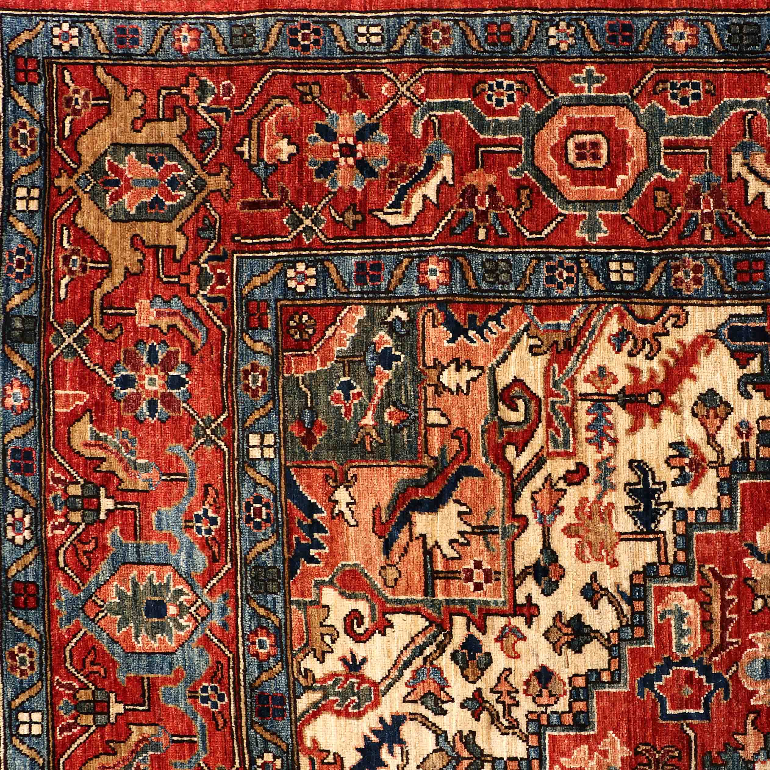 The designs in Heriz carpets are mainly geometric, bold, and inviting, with a large medallion centralised within. As with most high-quality weavers, the designs are passed down from generation to generation and are often woven from memory.