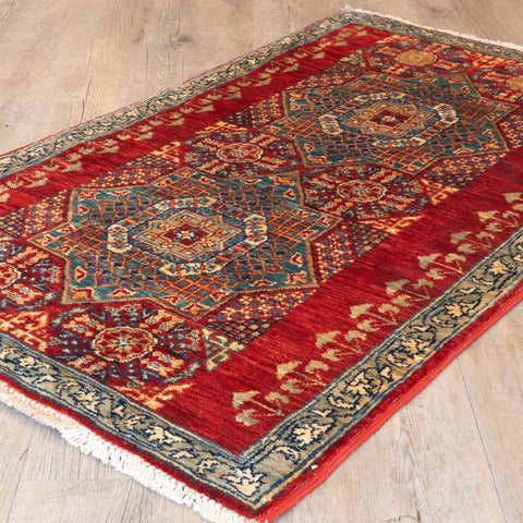 Handwoven by expert artisan weavers in northwest Afghanistan, this handmade extra fine Afghan Mamluk rug showcases exceptional craftsmanship nurtured within a cottage industry. Crafted from beautifully soft wool with a luxurious sheen, its pile feels velvety to the touch. The striking, vibrant red background is accented by refined green details, reflecting traditional skills meticulously preserved through generations. This rug combines heritage artistry with superior quality, bringing a touch of sophisticated elegance to any space.