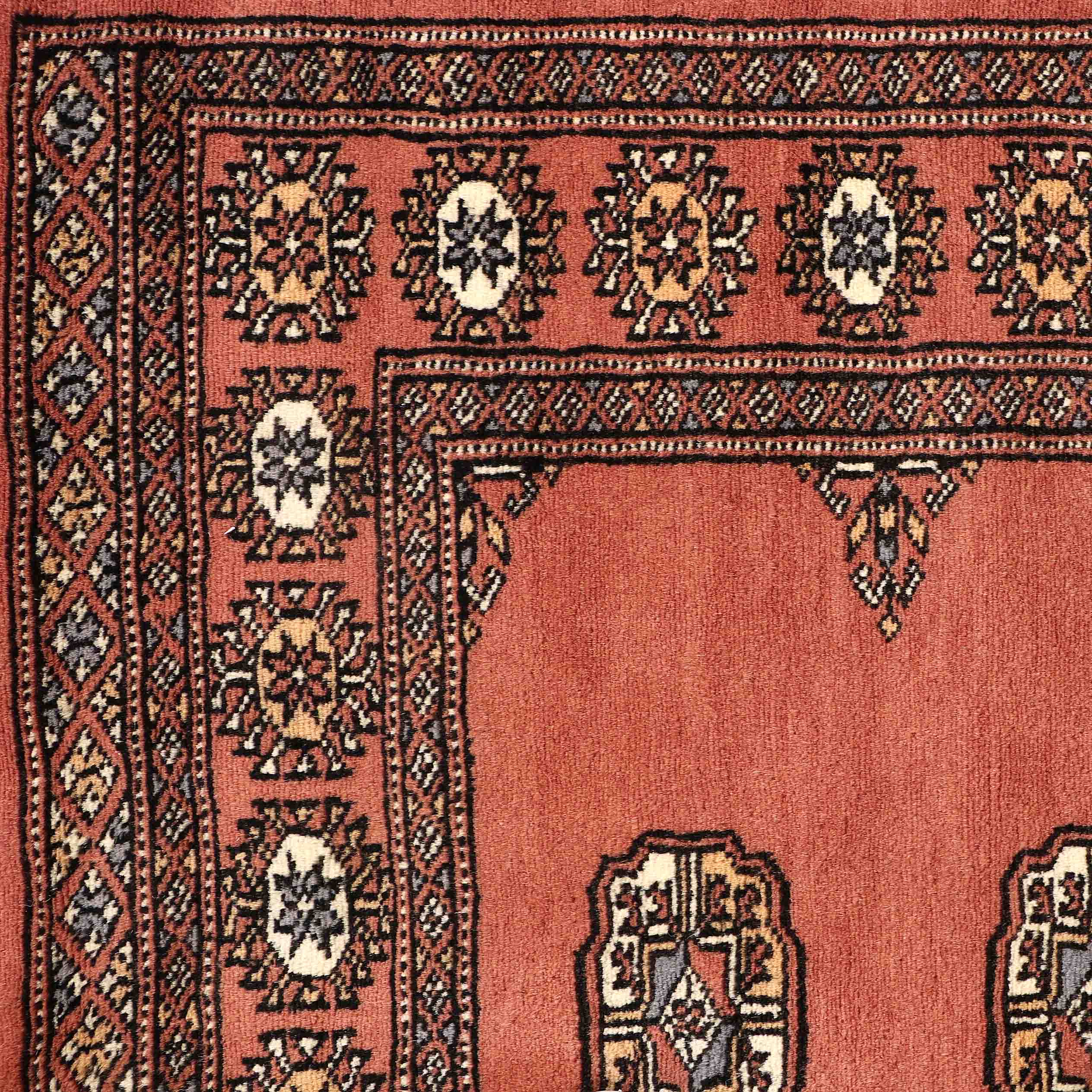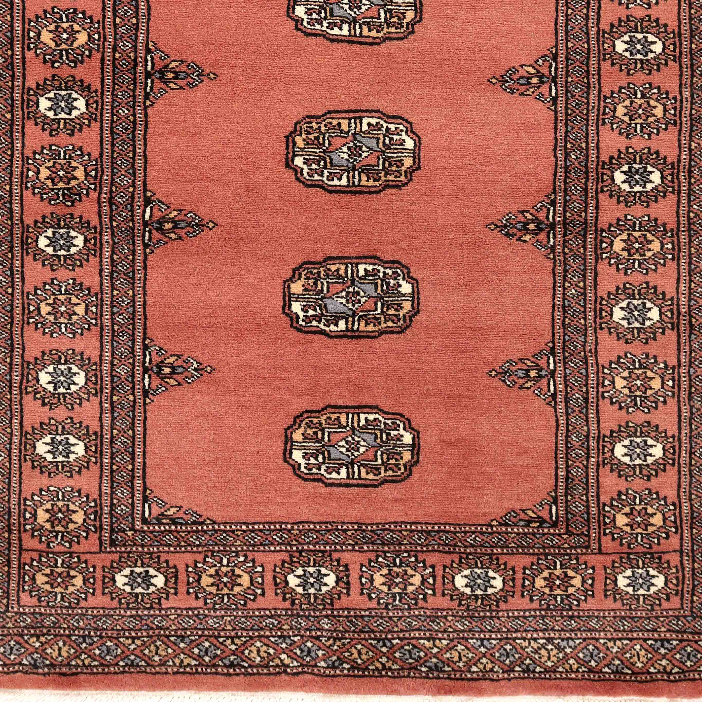 The well-known Bokhara design originates from Uzbekistan, where the nomadic Turkoman tribespeople first took their rugs to be sold. The repetitive octagonal motif or "gul" (Persian for rose) is a characteristic of Bokhara rugs, and today the Pakistani people weave this design in a wide range of colours and sizes.