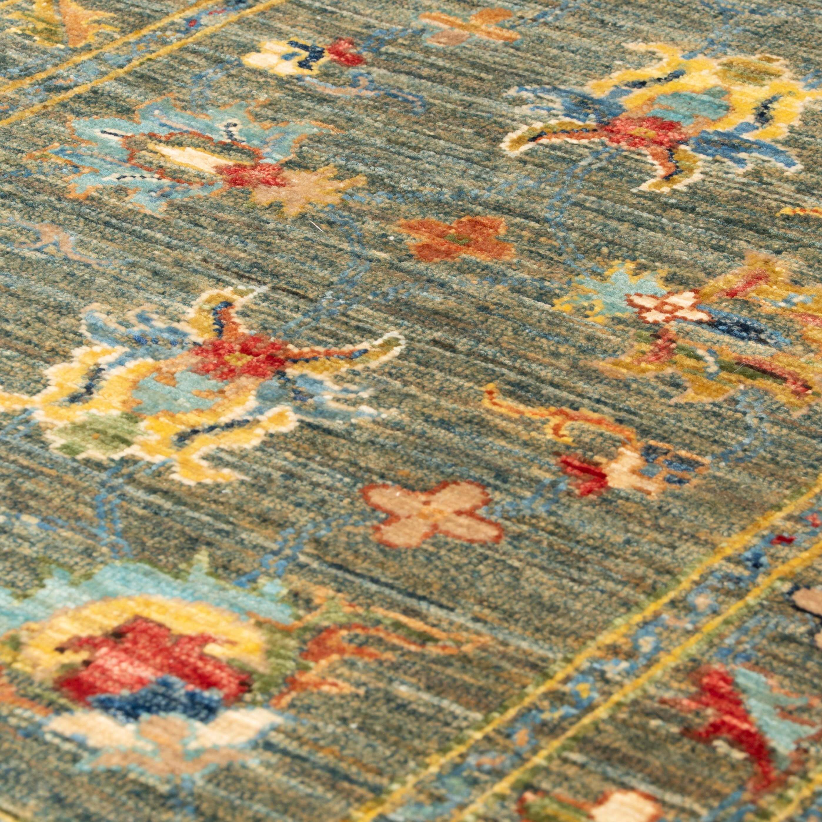 This luxurious Afghan Ziegler rug is a true masterpiece, handcrafted by skilled artisans using traditional techniques passed down from generation to generation. The handspun vegetable-dyed wool creates a practical and hardwearing rug, while the simple floral design and unusual green background add a touch of sophistication to any home. Elevate your space with this exclusive, handmade creation from north-west Afghanistan.