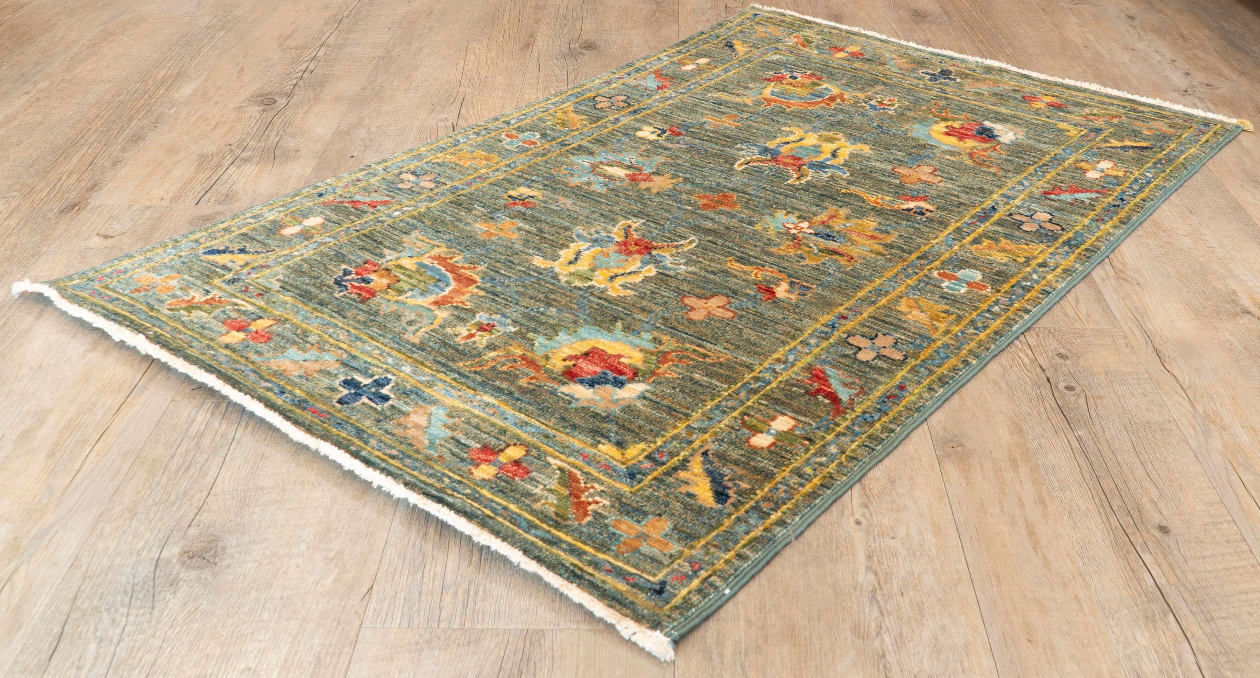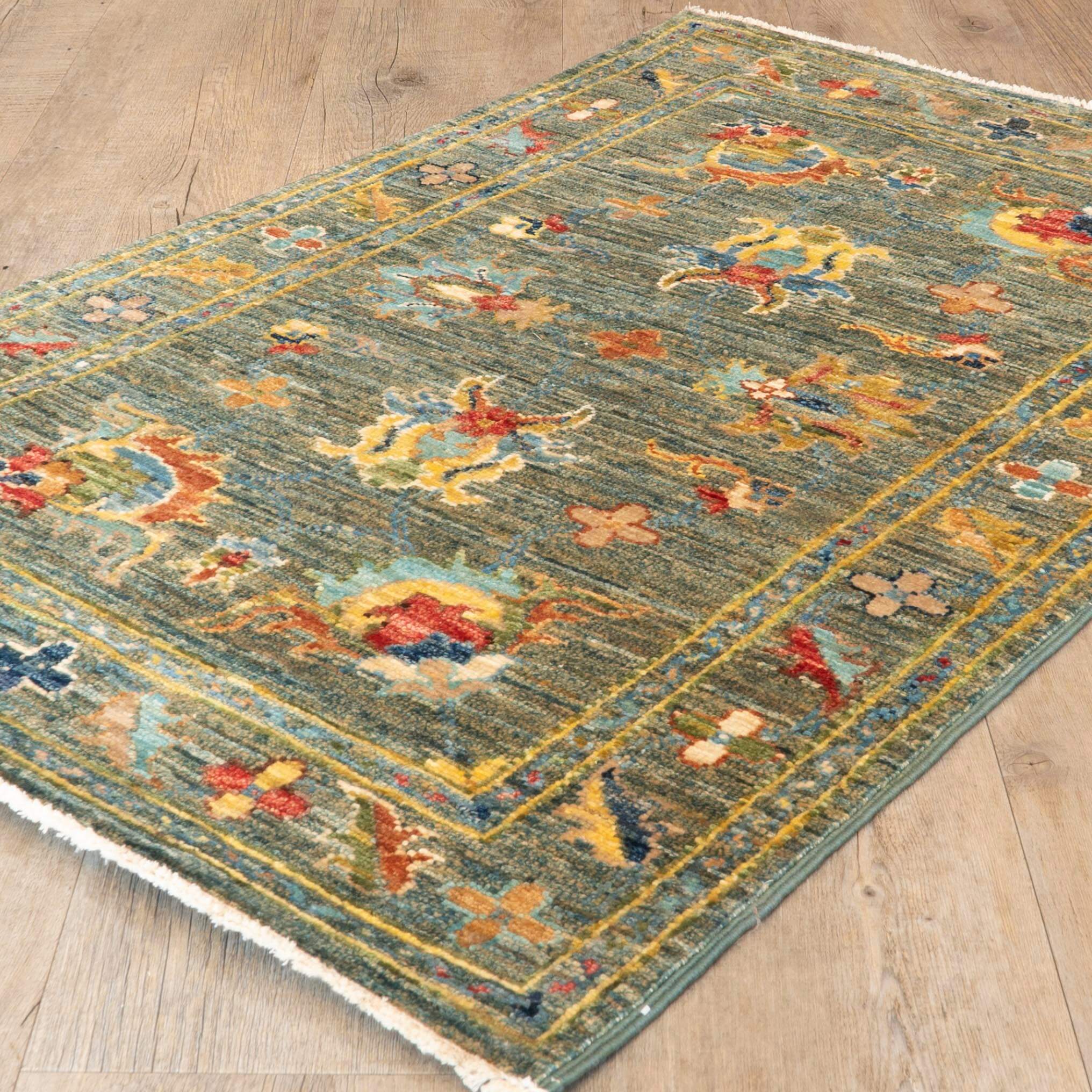 This luxurious Afghan Ziegler rug is a true masterpiece, handcrafted by skilled artisans using traditional techniques passed down from generation to generation. The handspun vegetable-dyed wool creates a practical and hardwearing rug, while the simple floral design and unusual green background add a touch of sophistication to any home. Elevate your space with this exclusive, handmade creation from north-west Afghanistan.  Please click the hyperlinks in Gold if you are interested in additional information. For the last twenty years, Afghan Ziegler rugs and carpets have generally been made in softer tones and different colours. However, things must move on, and 'welcome to...