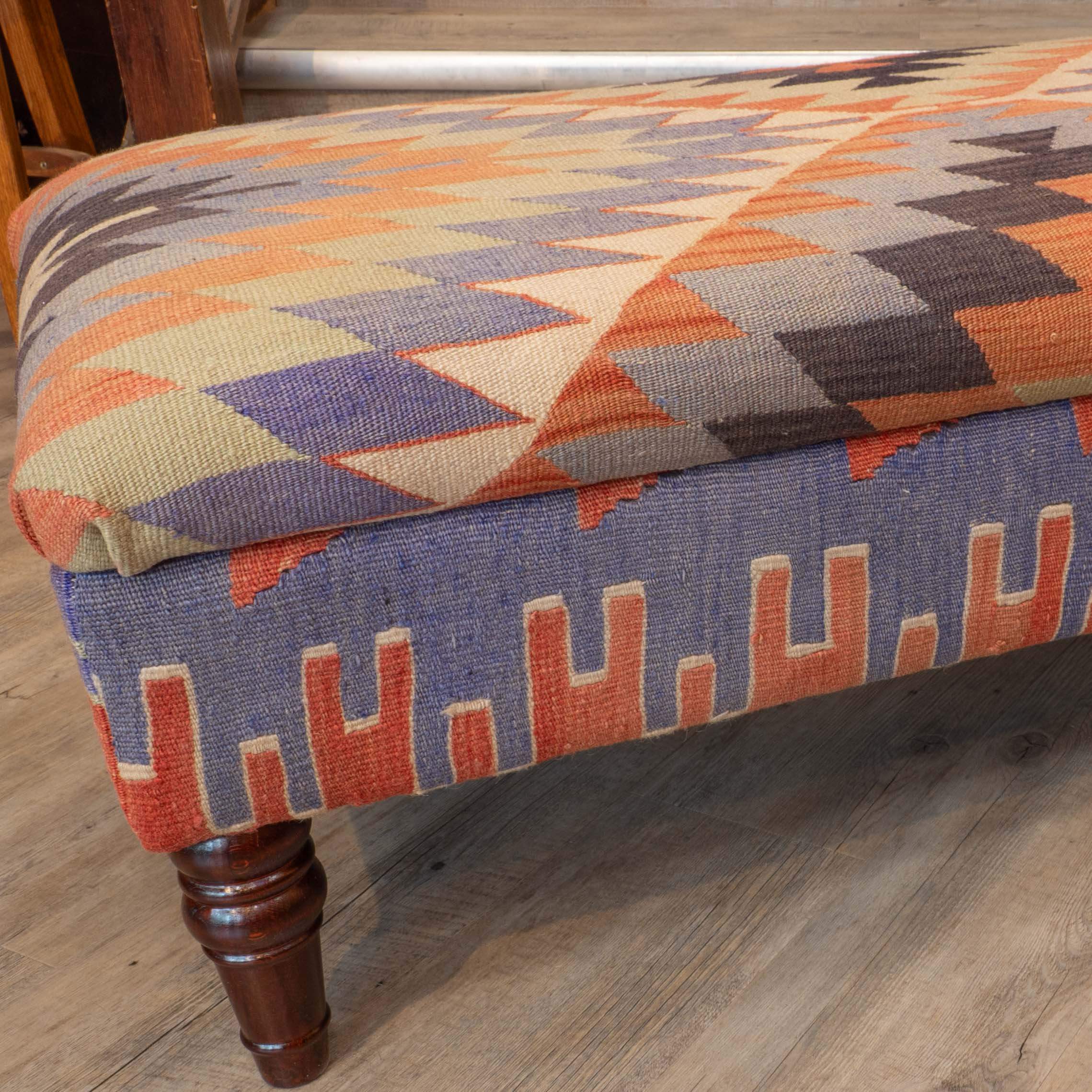 Salvaged Kilim rugs are usually used to produce these pieces—particularly old Turkish kilim, which often has lovely motifs with meanings. Vegetable-dyed wool is a beautiful natural fibre that generally contains high levels of lanolin, making it very practical. Kelim is woven using hand-dyed wool in both the warp and the weft. The patterns produced are often identified by the region in which they are made, and the designs are passed down through generations from mother to daughter.