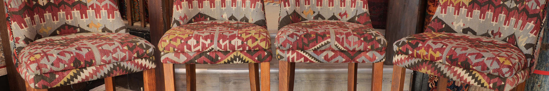 These interesting bar stools are very smart. The salvaged kilim has been repurposed to create interesting high stools, which will be a fabulous addition to anyone seeking something extra special and unique. Each piece of Kilim has been expertly placed to full effect; although...- £625.00