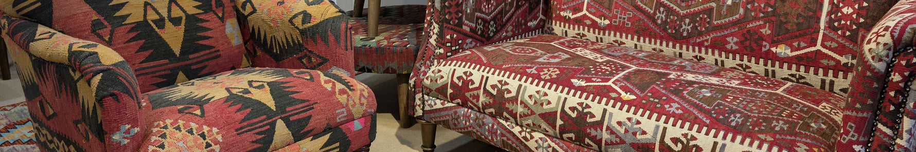 We're excited about our developing Kilim upholstered furniture collection. This new Lenny chair is yet another introduction to this exciting range. The salvaged Kilim is bonded to a cotton backing fabric to stabilise the weave. As each Kilim is unique, our upholsterer then searches...- £2,141.75