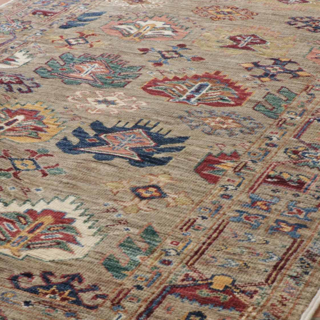 Afghan Aryana rugs are hand-knotted in Mazar-e-Sharif and Kabul in Afghanistan, often using designs from museum pieces. Woven from long wool sheared from Karakul sheep, the wool is washed using a gentle soap with water, hand-combed, and hand-spun on a spindle. Next, the wool is vegetable dyed using plants, flowers and berries, walnut husks, pomegranate rind, madder root, and indigo. Not surprisingly, wools vary in colour due to differences in the absorption of the dyes – resulting in a feature referred to as ‘Abrash'- giving Aryana rugs their unique colour and distinct appearance.