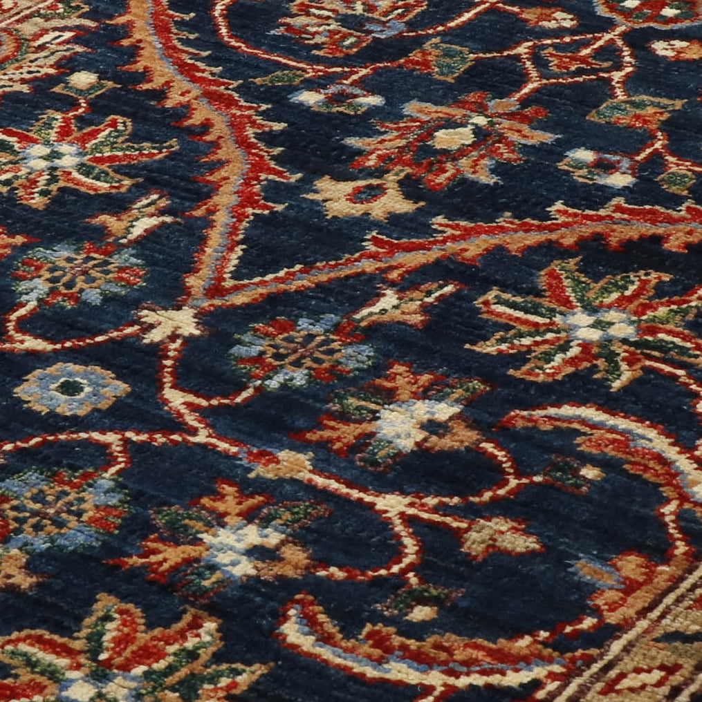 This unique and varied collection is produced in northwest Afghanistan and has a similar construction to the Ziegler rugs. The wool is hand-sheared from indigenous Karukal sheep. It is then hand-spun and coloured using natural vegetable and mineral dyes. These pieces have utilised attractive old Persian designs and patterns from unusual museum pieces. They are generally more vibrant colours and less muted shades. However, the exciting and uplifting colours remain almost Jewel-like. The final finishing processes are carried out in Pakistan, where some post-production occurs, including alignment corrections, surface clipping and tumbling, and the washing mentioned earlier.