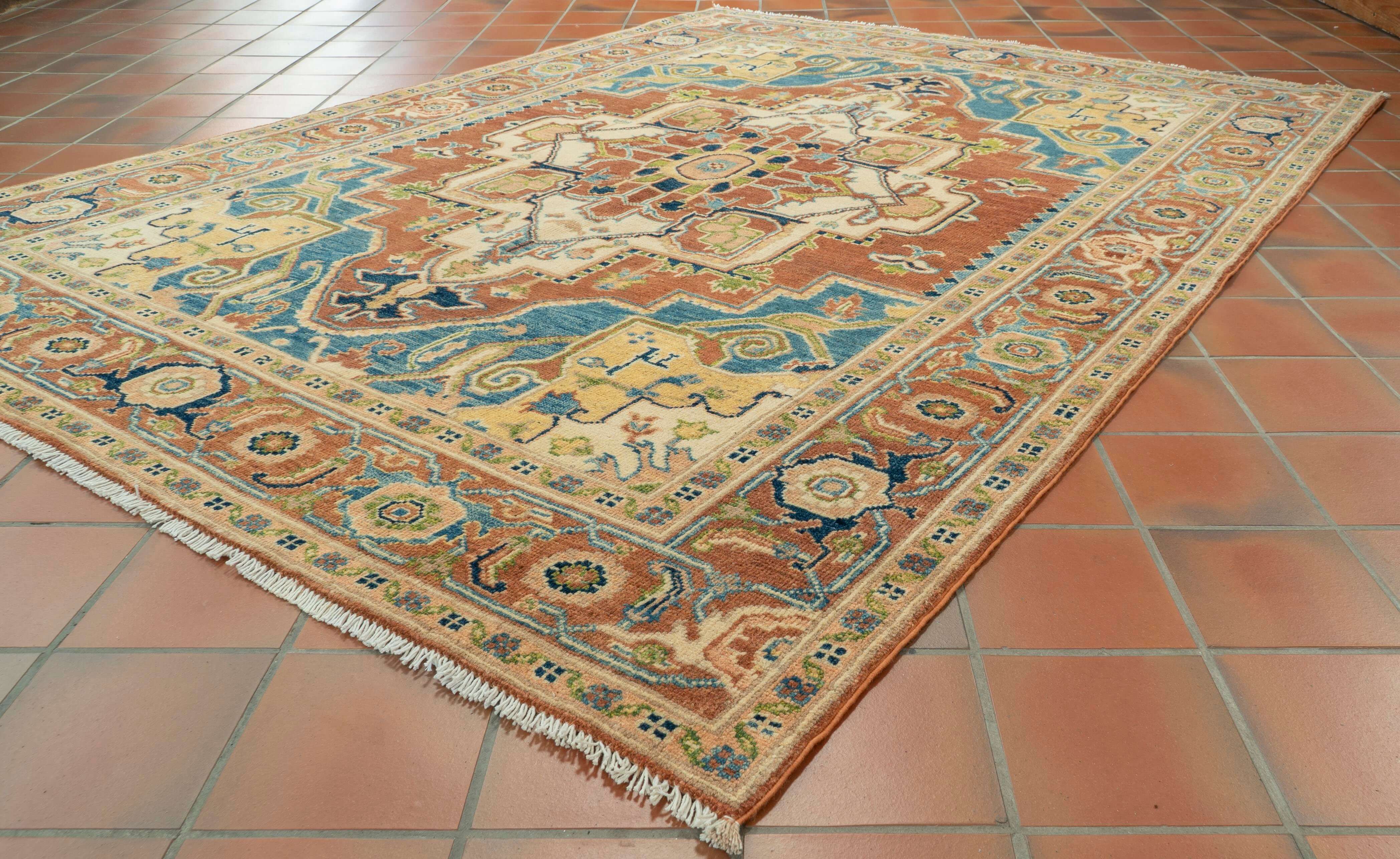 The designs featured in Heriz carpets are mainly geometric, bold, and inviting patterns that include a large medallion centralised within. As with most high-quality weavers, the designs are passed down from generation to generation and are often woven from memory.
