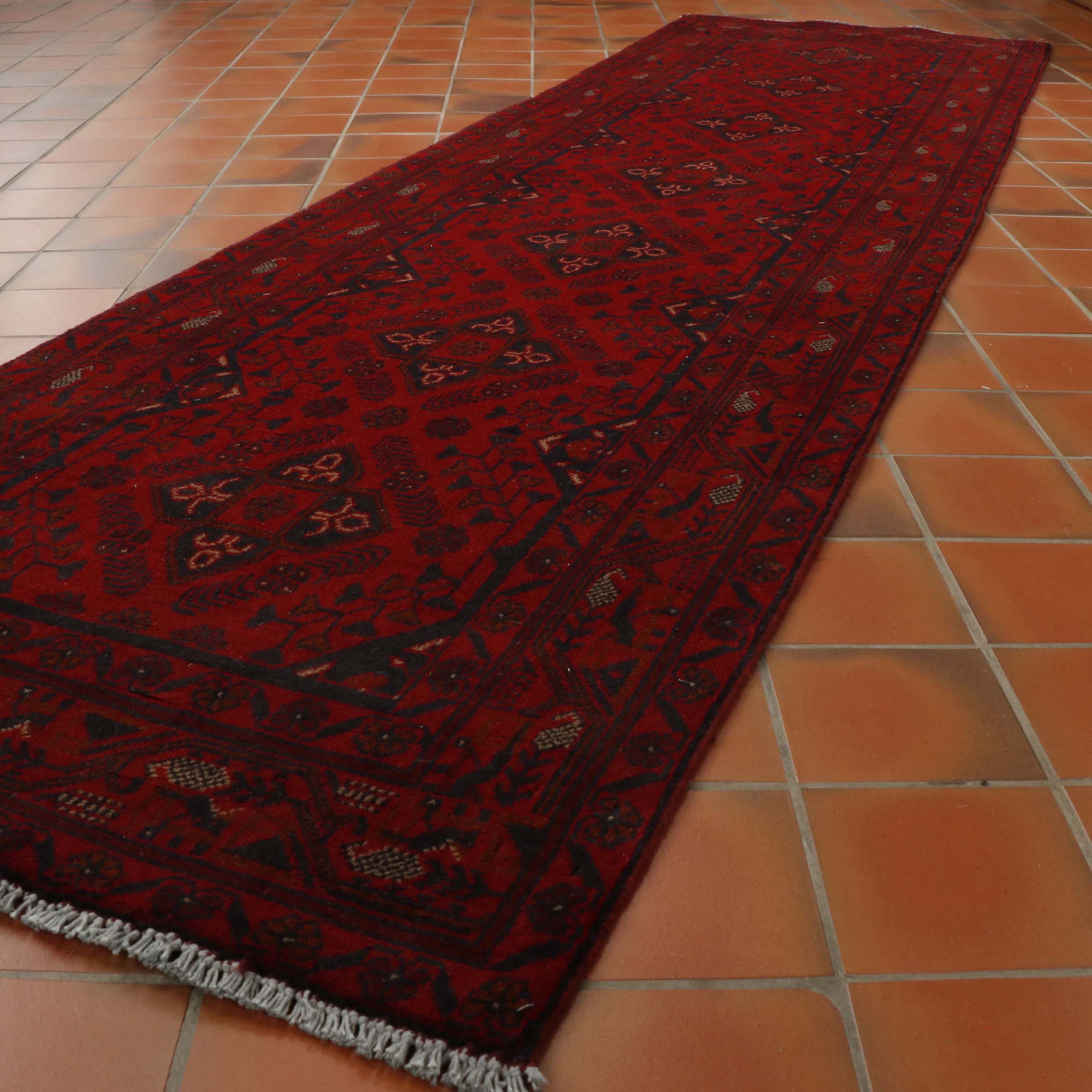 This handmade Afghan Khal Mohammadi runner is a true work of art crafted by skilled weavers from northwest Afghanistan. Made from handspun wool and dyed with natural vegetable dyes, this runner features a rich red colour and a traditional geometric pattern. Durable and practical, it is the perfect addition to any home.