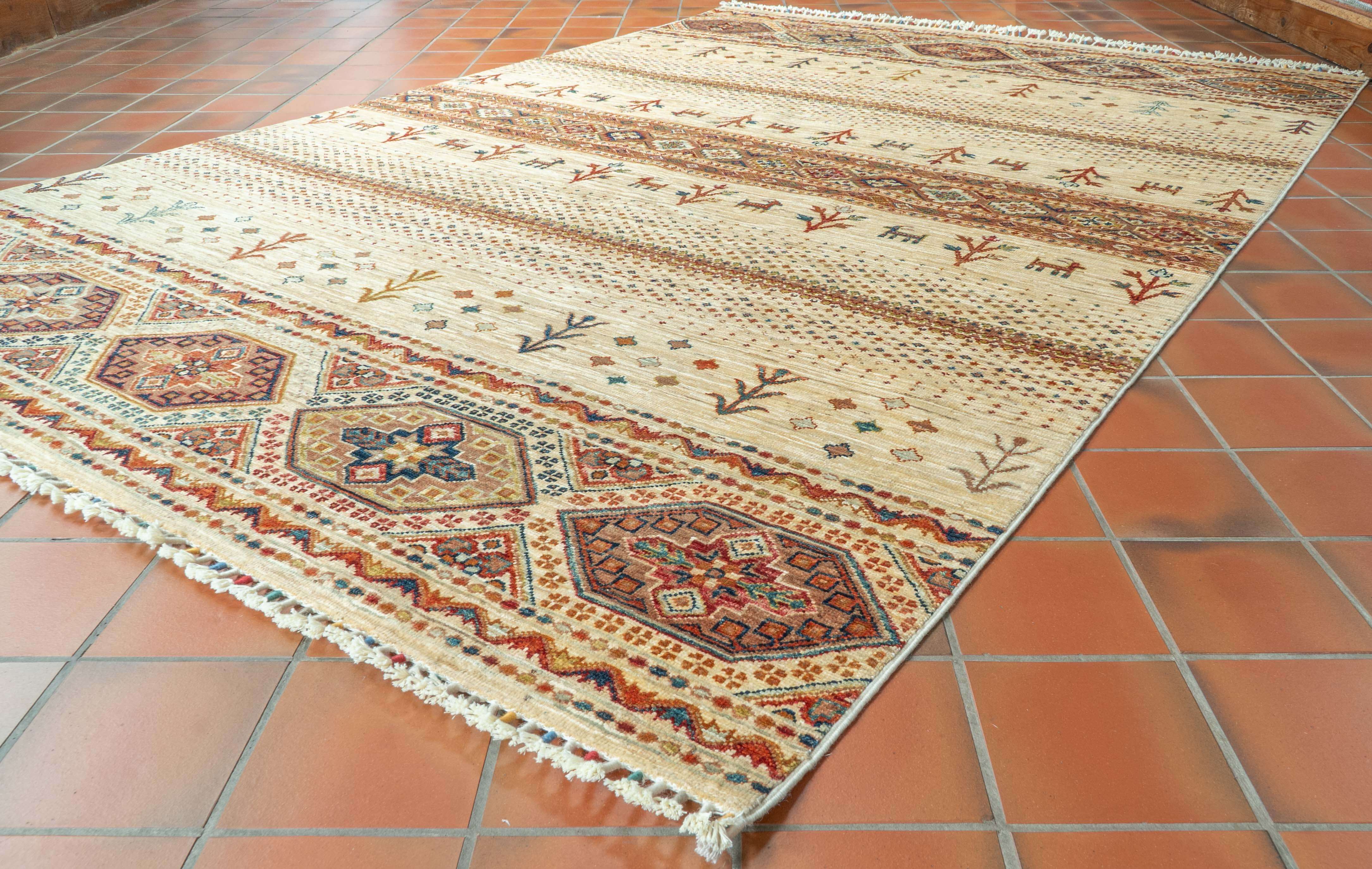 This exquisite Afghan Kharjeen rug is expertly handcrafted by skilled artisan weavers from north-west Afghanistan, preserving traditional techniques passed down through generations. Produced within a cottage industry, it features handspun wool dyed with natural vegetable pigments, ensuring authentic colour depth and durability. The carpet’s robust construction balances practicality with artistic finesse, blending classic Afghan motifs with subtle contemporary influences. Its refined palette of soft, harmonious colours makes it an enduring and versatile piece suitable for discerning environments. Please click the hyperlinks in gold if you are interested in additional information. Afghan handmade carpets are gaining considerable recognition. This market has been...