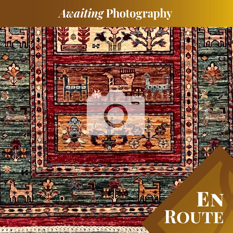 You can buy this handmade carpet before it arrives in our Tewkesbury showroom. As the rug has not yet been received into our stock at Tewkesbury, it has yet to be properly photographed; the images are perhaps not as good as our normal images. However, they are actual photographs of the finished rug. Once the rug has been transferred from our warehouse, we will rephotograph it.