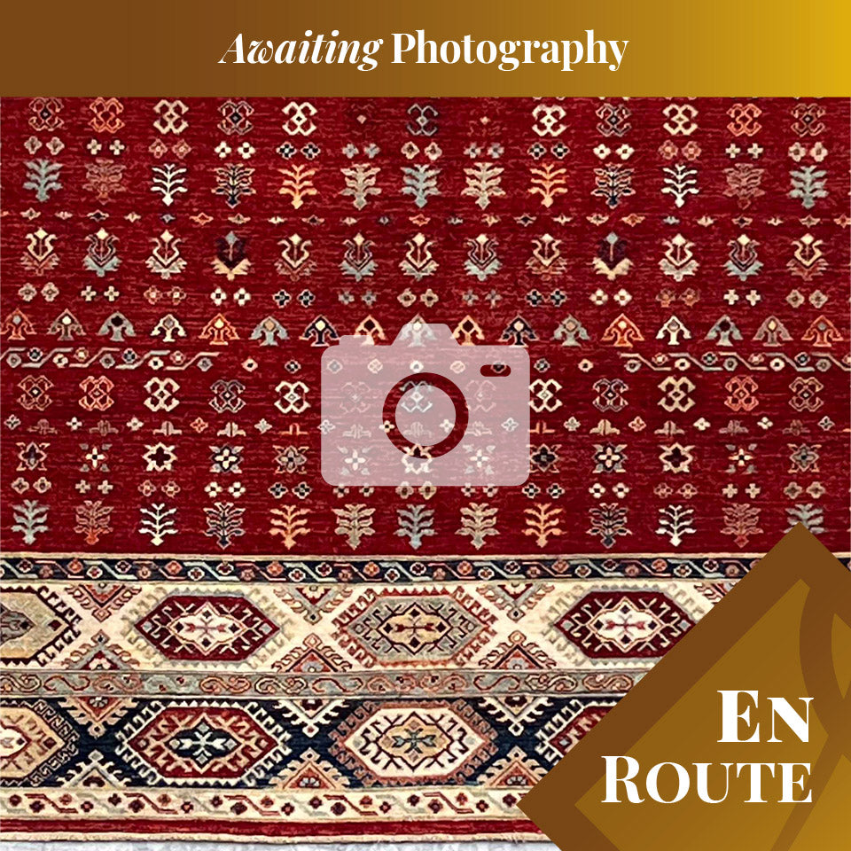 You can buy this handmade carpet before it arrives in our Tewkesbury showroom. As the rug has not yet been received into our stock at Tewkesbury, it has yet to be properly photographed; the images are not as good as our normal images. However, they are actual photographs of the finished rug. Once the carpet has been transferred from our warehouse, we will rephotograph it.