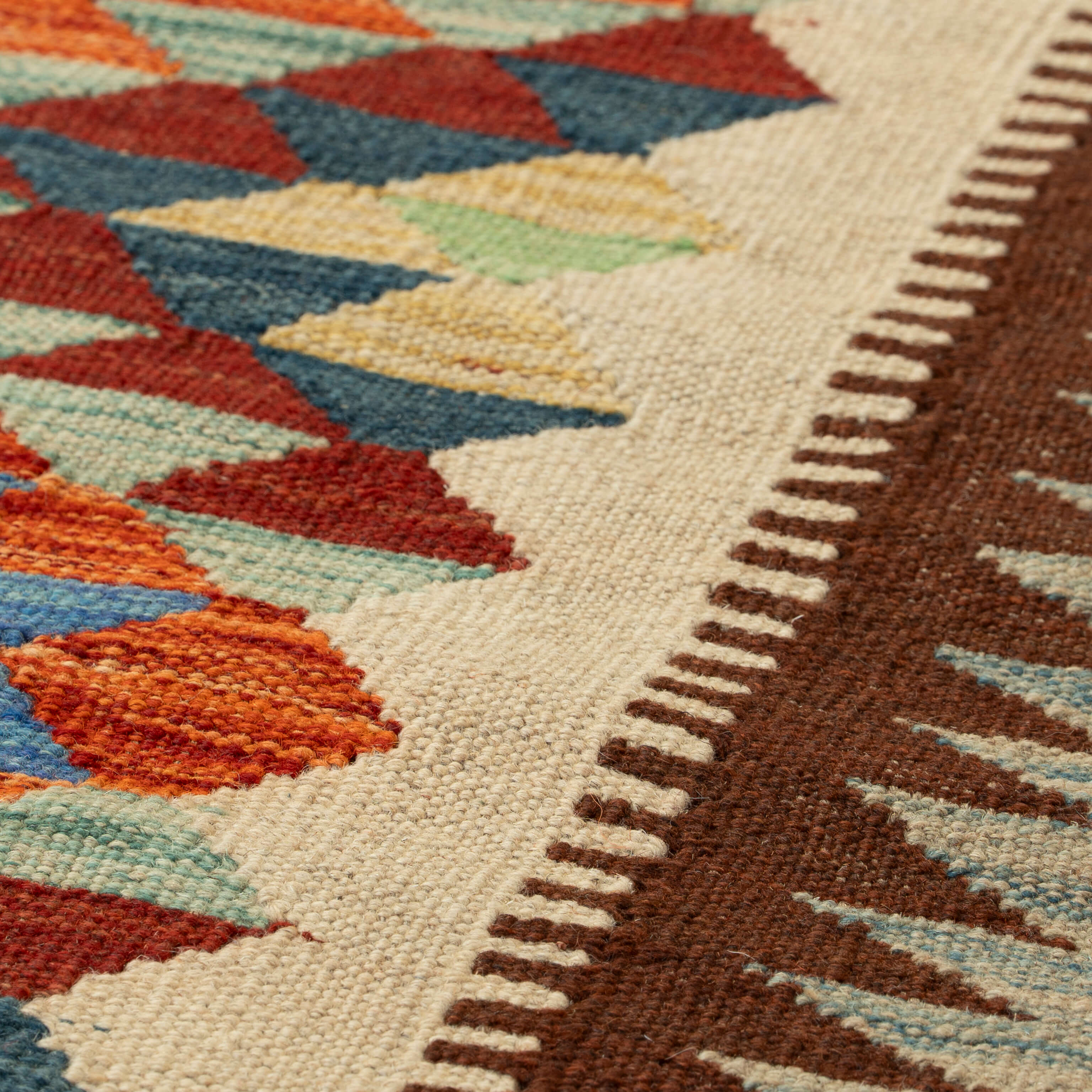 The term we use to describe a flat-woven rug instead of a hand-knotted rug (pile) appears in two forms (to assist your search term). Flat-woven rugs handmade in Afghanistan, India, Pakistan, and Turkey will be known as Kilim, whereas those made in other Oriental areas are known as Kelim.
