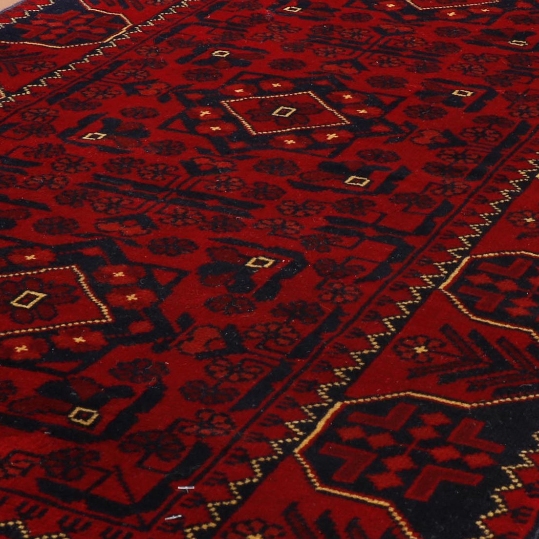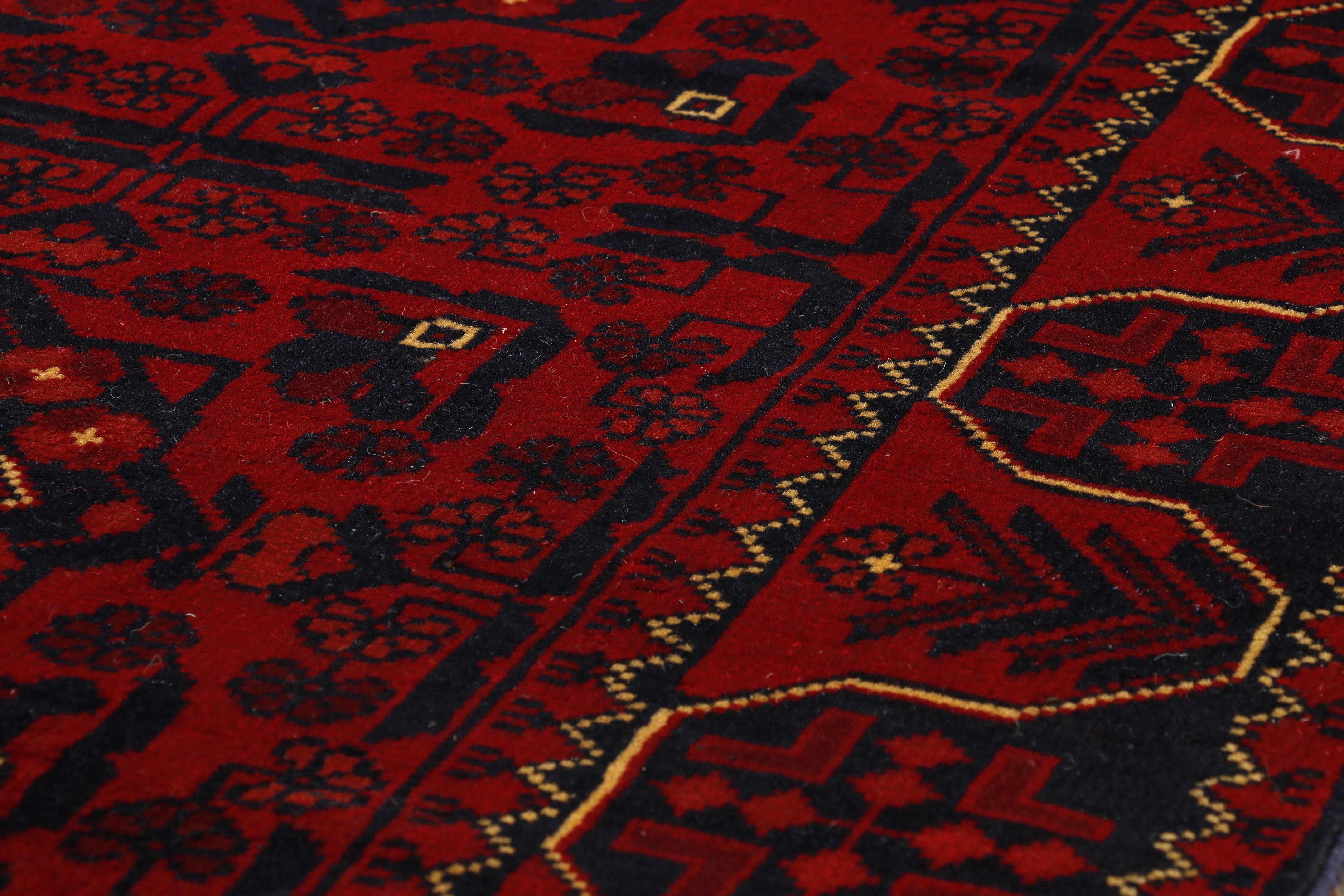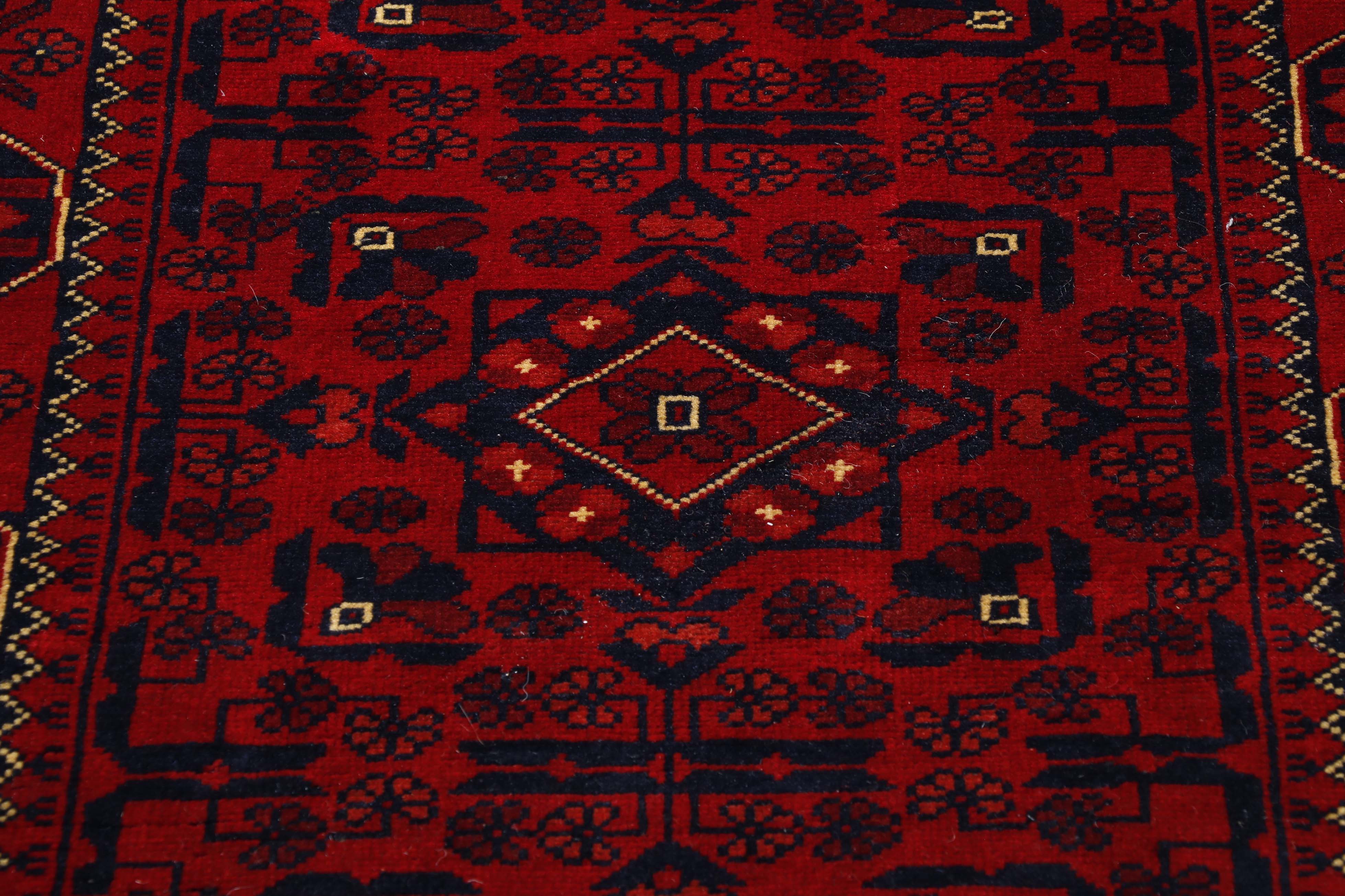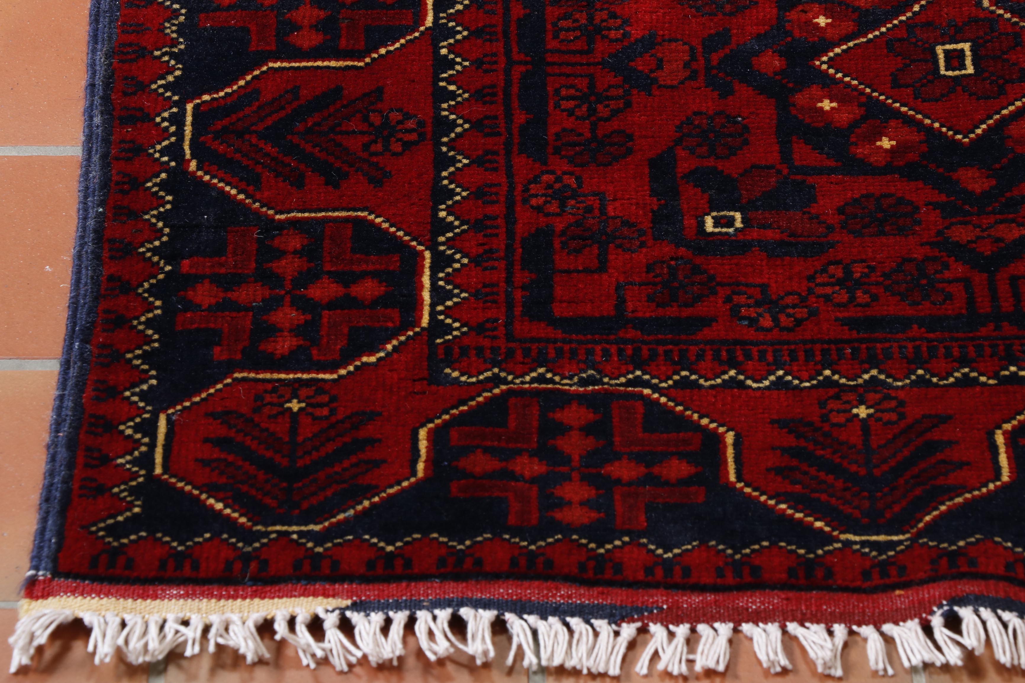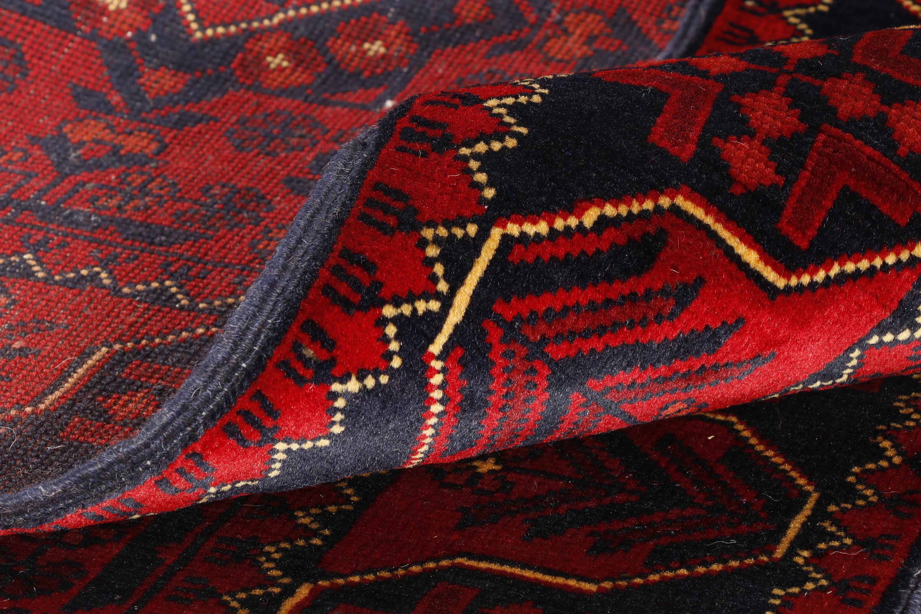 Afghan Kunduz and Afghan Khal Mohammadi rugs may occasionally look quite similar. However, the Kunduz are generally finer knotted and have more details within the pattern. Both of these rugs use the same madder plant to create the vegetable-dyed wool that is so hardwearing
