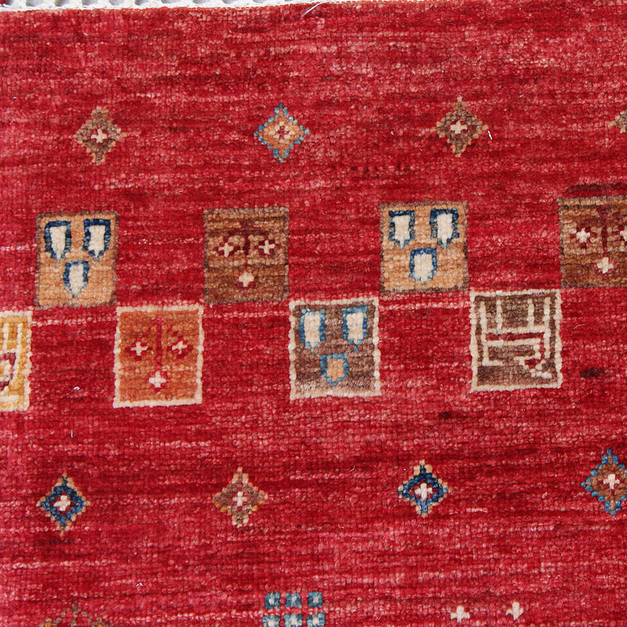 The carpets are still hand-knotted, and the wool is coloured with vegetable dye. The Loribaft rug designs can be reminiscent of Gabbeh designs, although the Loribaft pieces are more refined and tightly knotted. The colours of the Loribaft rugs and carpets are similar to those used in our Samarkand collections and possibly more vibrant. The main distinction is that the patterns are playful, using a defined colour palette and simple design, with stylised animals, plants, trees or characters with block colour often mimicking an ombre effect. Some Loribaft pieces do not have fringes, so they are finished with a plain kilim end or binding and secured to prevent fraying. Like the Samarkand carpets, other rugs are produced with an unusual bobbin wind on the warps.