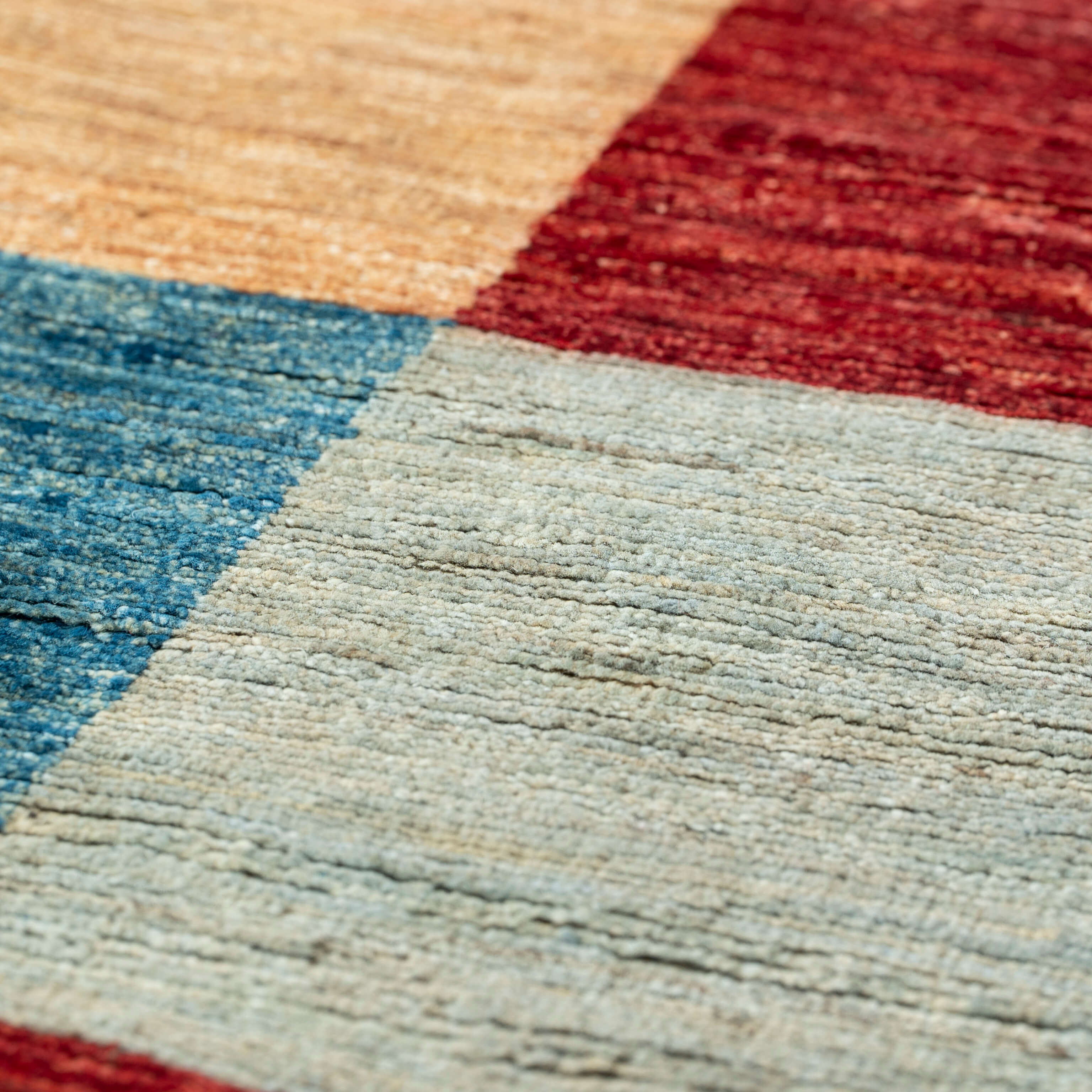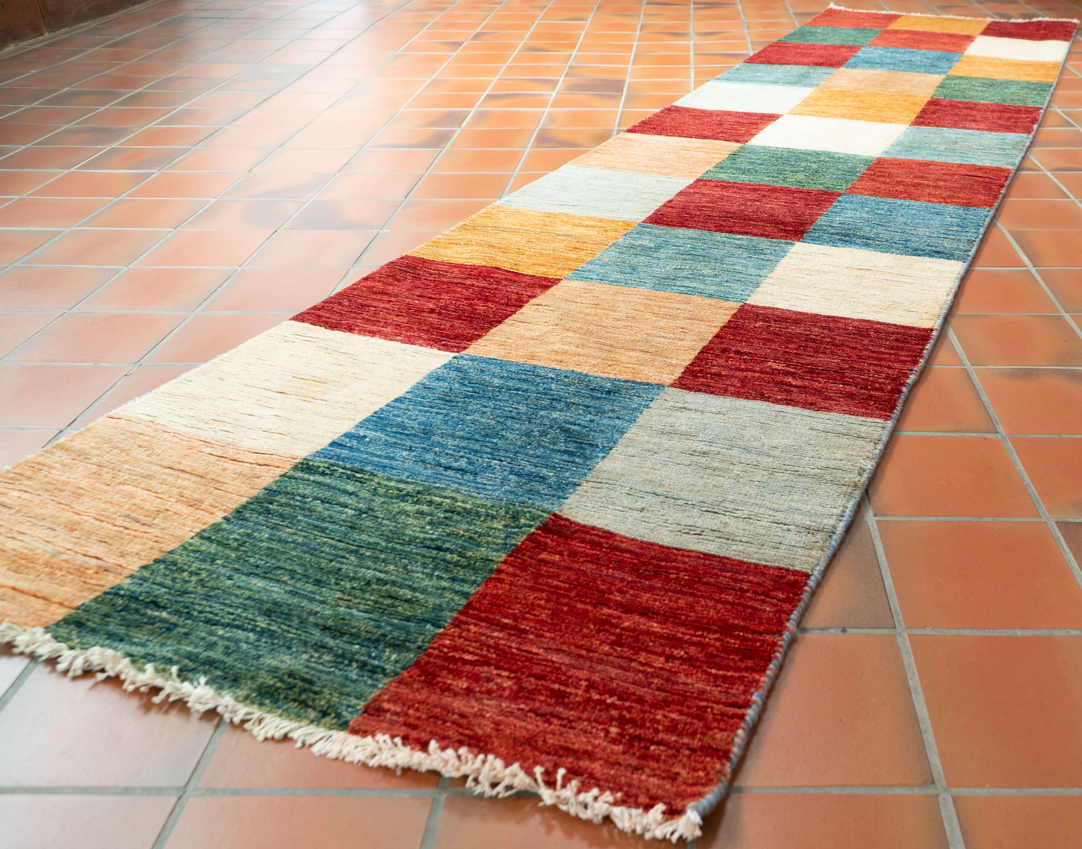 Expertly crafted by skilled artisan weavers in northwest Afghanistan, this Loribaft runner is a unique, contemporary piece that adds colour to any space. Made with handspun wool dyed with vegetable dyes, it is practical and hardwearing, making it a beautiful, durable addition to your home. Please click the hyperlinks in gold if you are interested in additional information. Afghan handmade carpets are increasingly well-regarded. This market has been growing rapidly in recent years, emphasising higher-quality knotting and Pakistan's influence in many finishing processes, such as initial tensioning to correct alignment issues when the weaver has drifted the wefts, causing the pattern to...