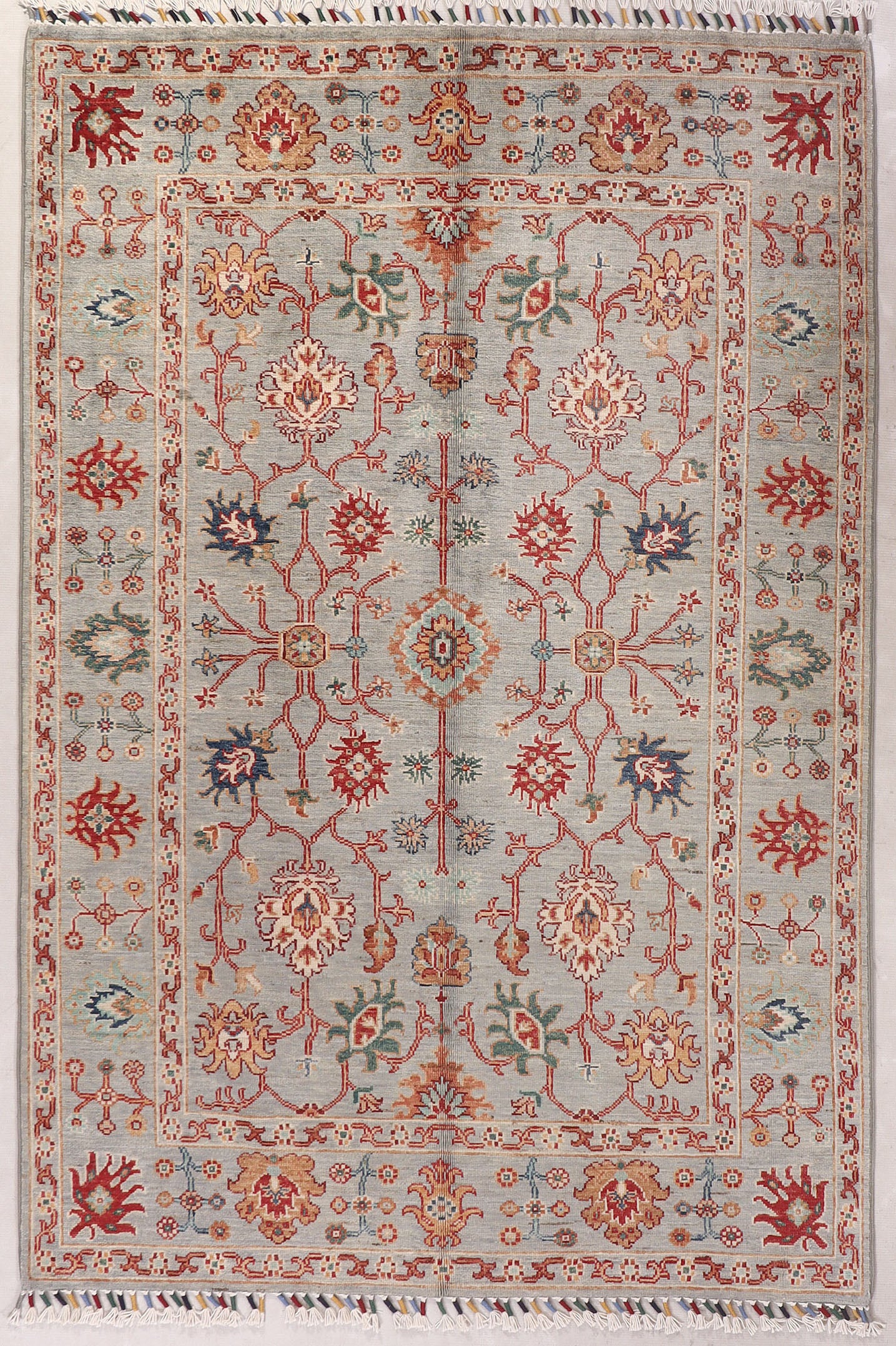 You can buy this handmade carpet before it arrives in our Tewkesbury showroom. The rug has not yet been received into our stock at Tewkesbury and has yet to be photographed at the showroom. Although the images may not be as good as our normal images, they are photographs of the finished rug. Once the carpet has been transferred from our warehouse, we will rephotograph it.