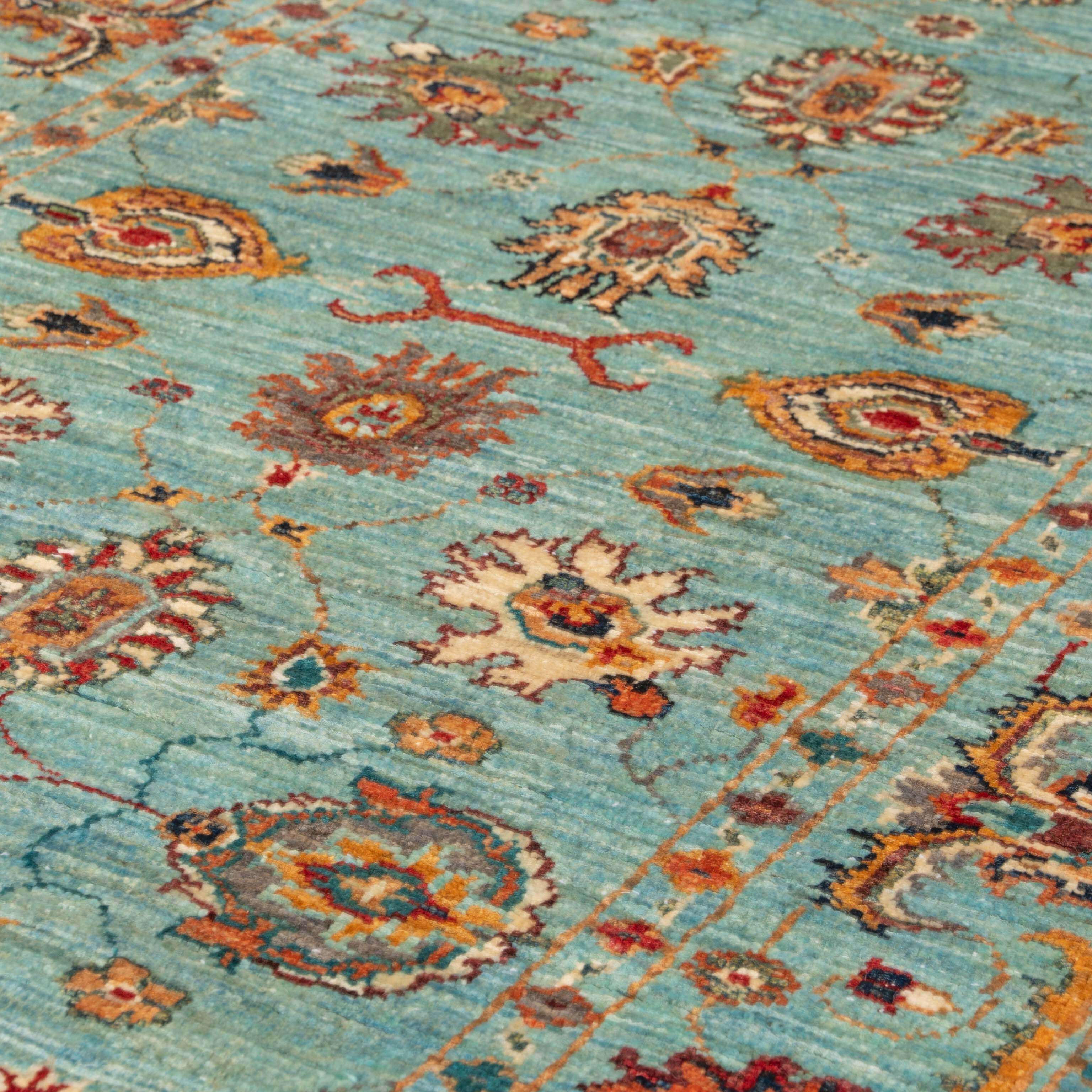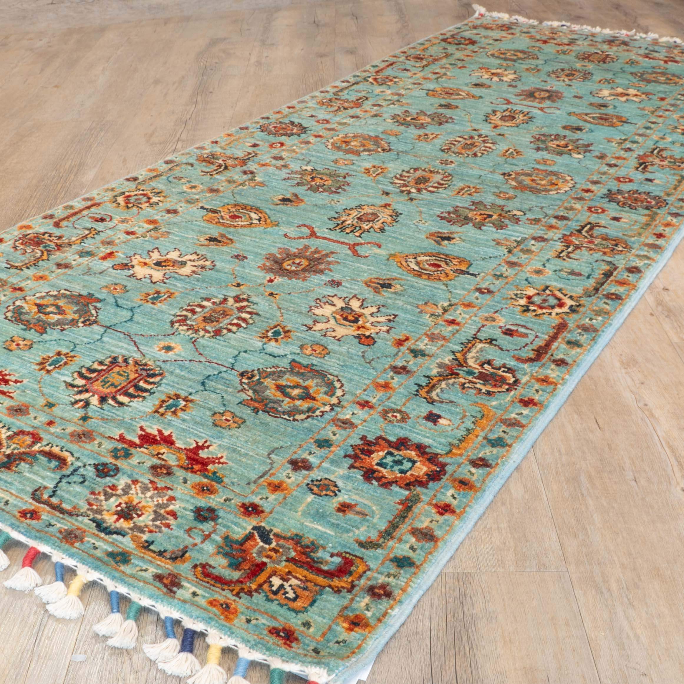 Originating from northwest Afghanistan, this beautiful Sultani short runner presents a classic all-over floral motif in refined shades that embody timeless sophistication. Meticulously crafted from vegetable-dyed, handspun wool, balances robust durability with a soft, lustrous texture that elevates any interior setting. Each rug is a testament to the expert craftsmanship and artistic heritage passed through generations of skilled weavers, making it both a functional home accessory and a valuable cultural artefact. This premium-quality piece delivers lasting elegance and resilience, ideal for connoisseurs of genuine, handcrafted luxury.