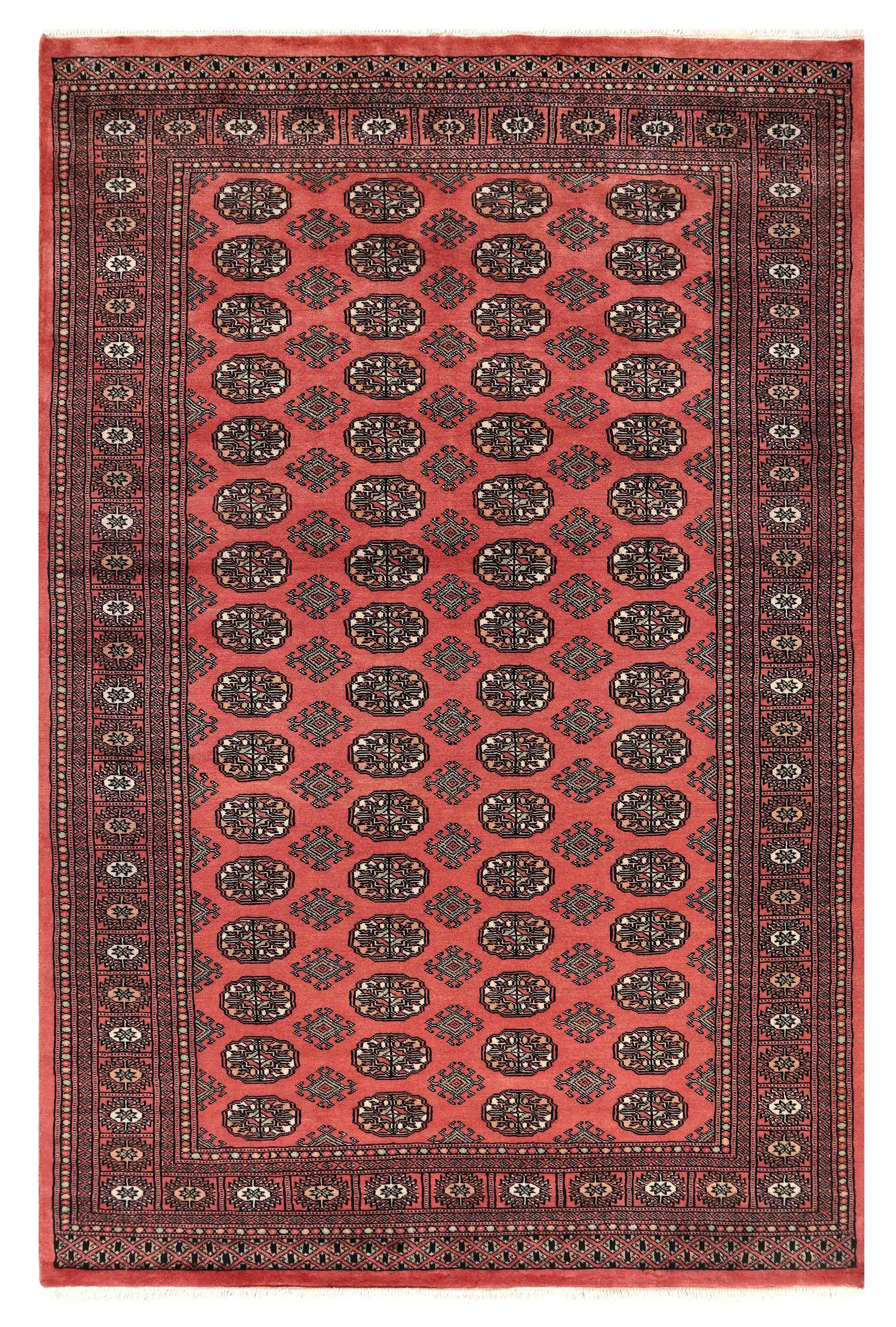 The well-known Bokhara design originates from Uzbekistan, where the nomadic Turkoman tribespeople first took their rugs to be sold. The repetitive octagonal motif or "gul" (Persian for rose) is a characteristic of Bokhara rugs, and today the Pakistani people weave this design in a wide range of colours and sizes. More recently, we have seen some interesting variations- in this instance, the design has morphed into butterflies.