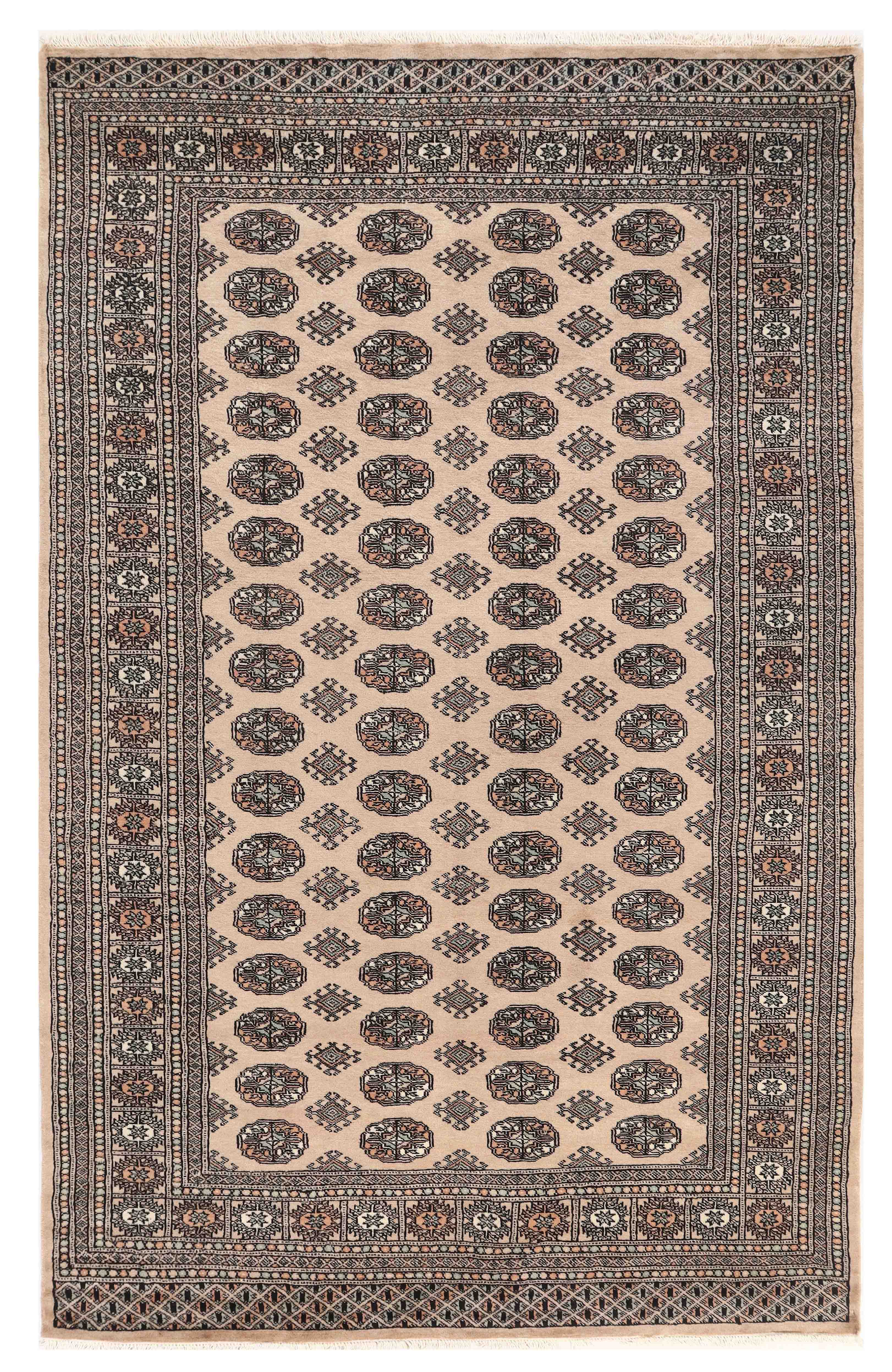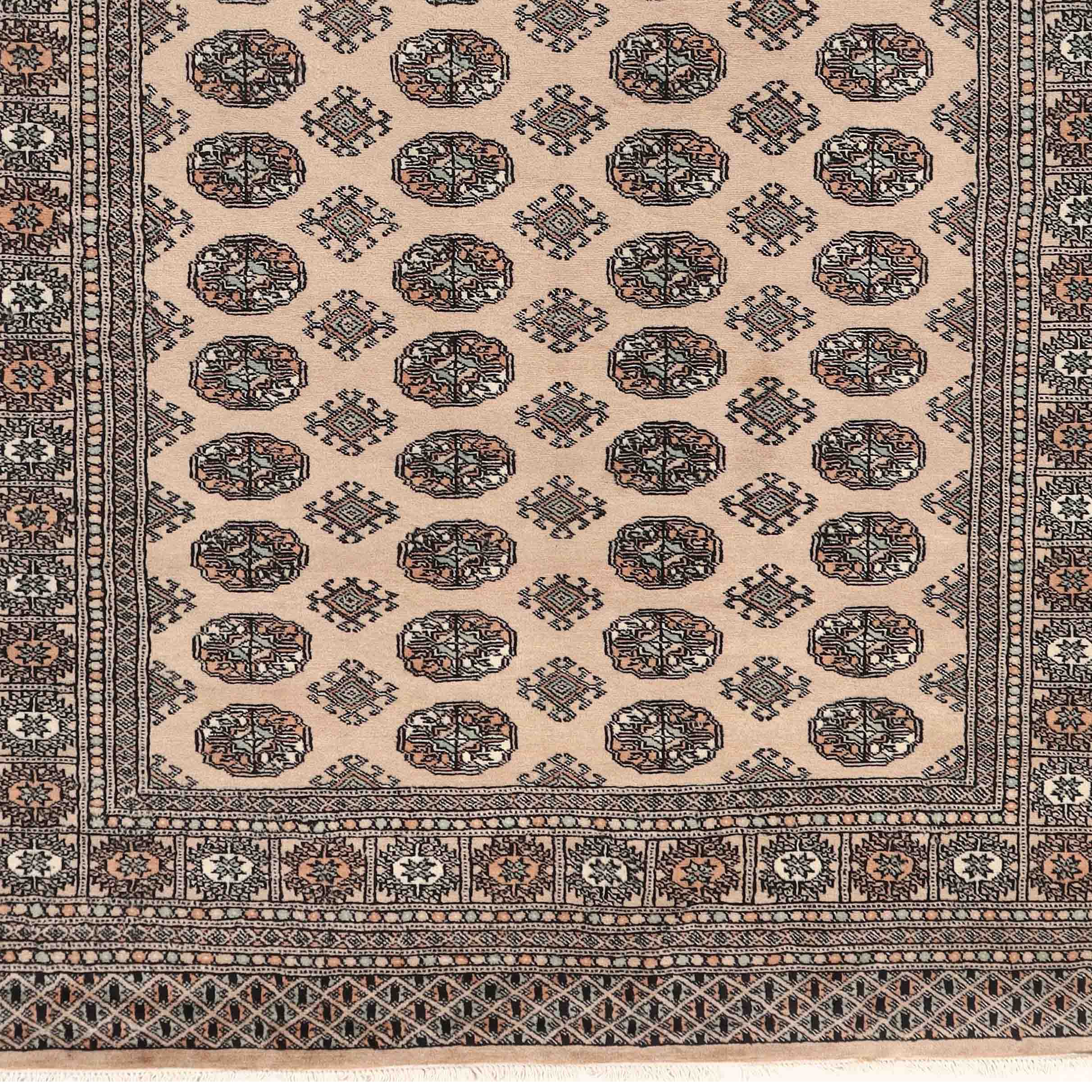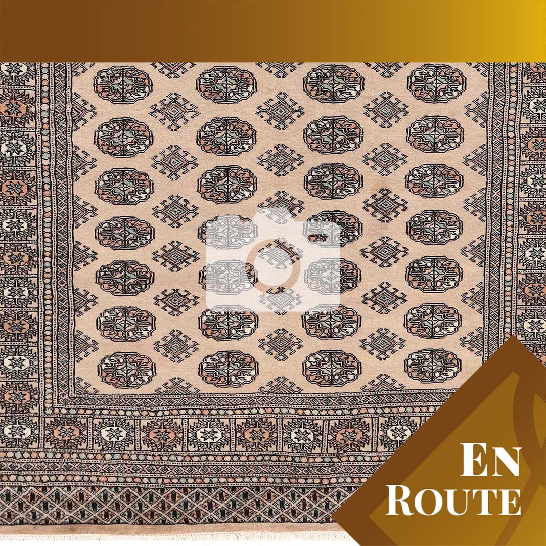 The well-known Bokhara design originates from Uzbekistan, where the nomadic Turkoman tribespeople first took their rugs to be sold. The repetitive octagonal motif, known as a "gul" (Persian for "rose"), is a characteristic feature of Bokhara rugs. Today, Pakistani people weave this design in a wide range of colours and sizes.