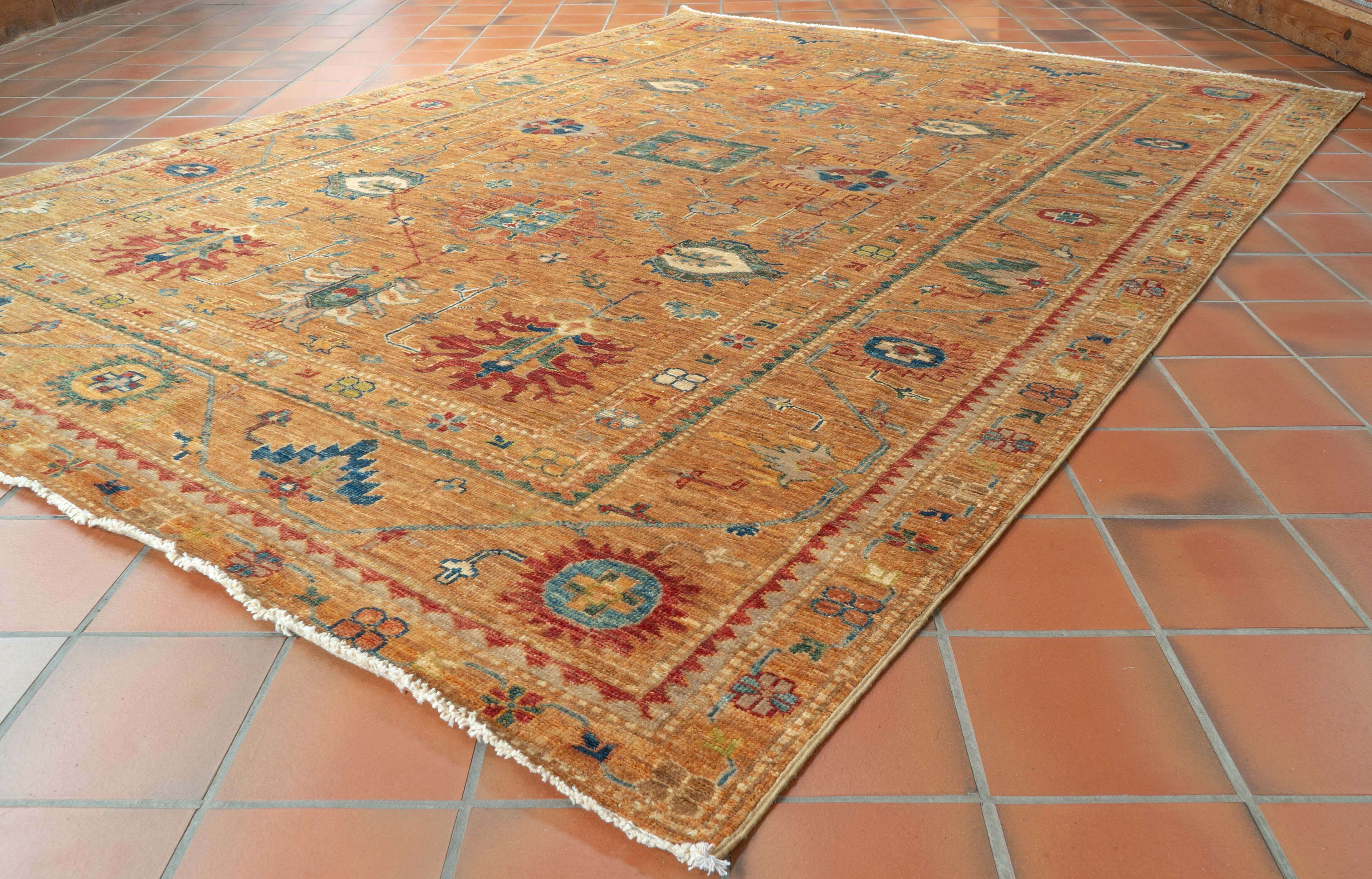 Handcrafted by skilled artisans in Northwest Afghanistan. From the vegetable-dyed, finely spun wool to the luxurious old gold finish, this functional art piece is the perfect combination of traditional craftsmanship and quality, sure to remain a treasured heirloom for generations to come.