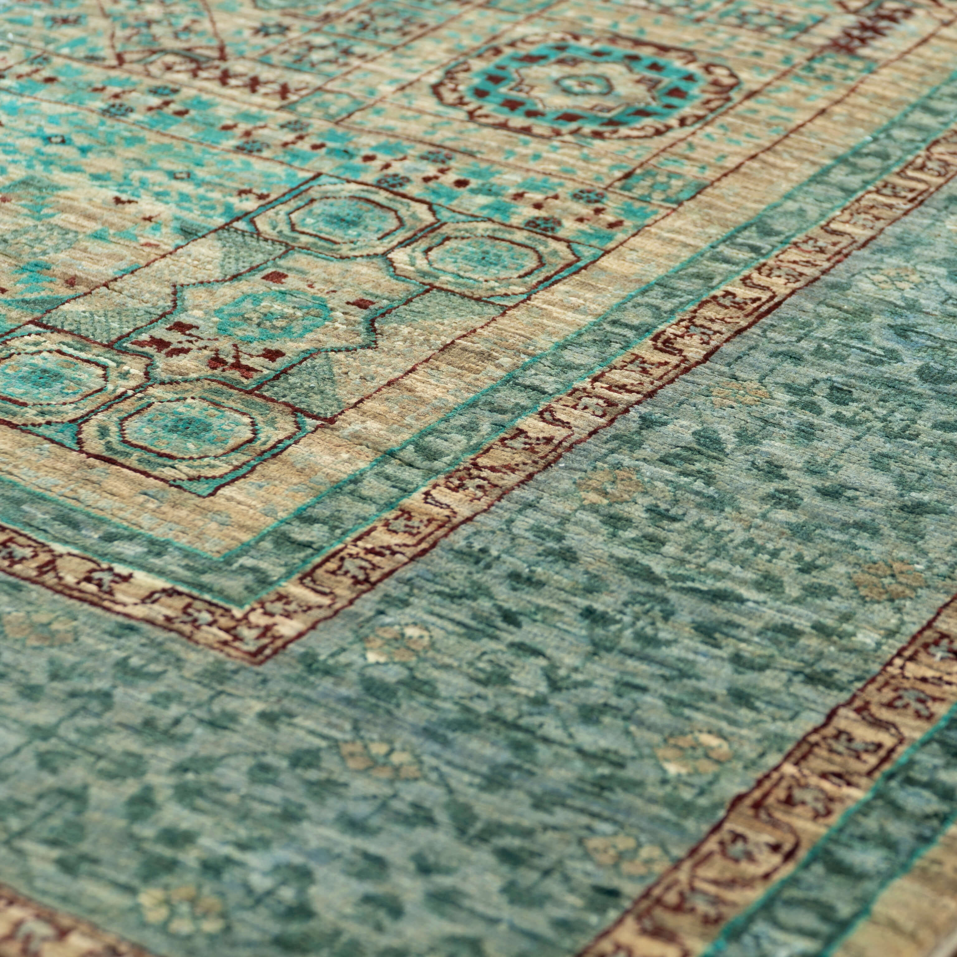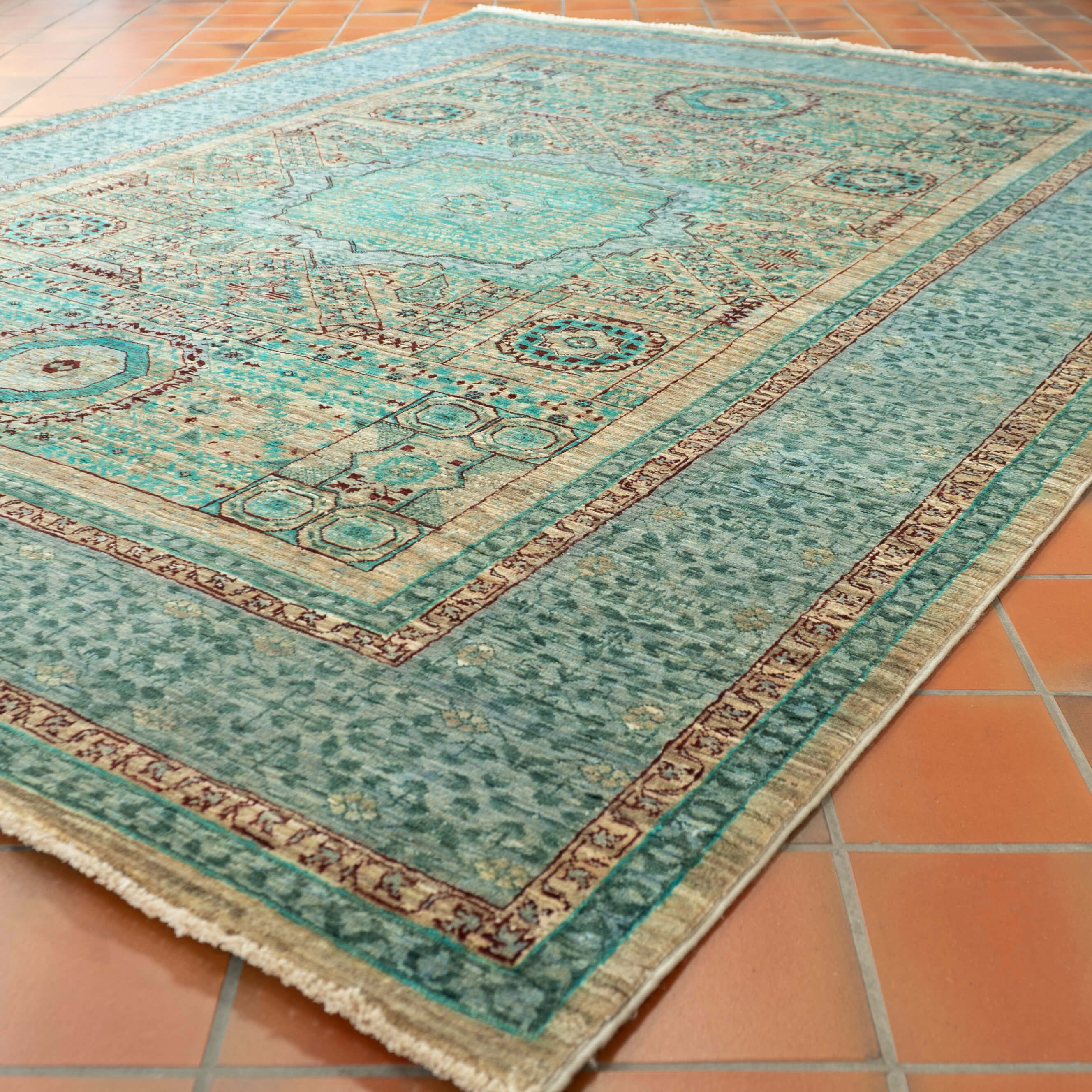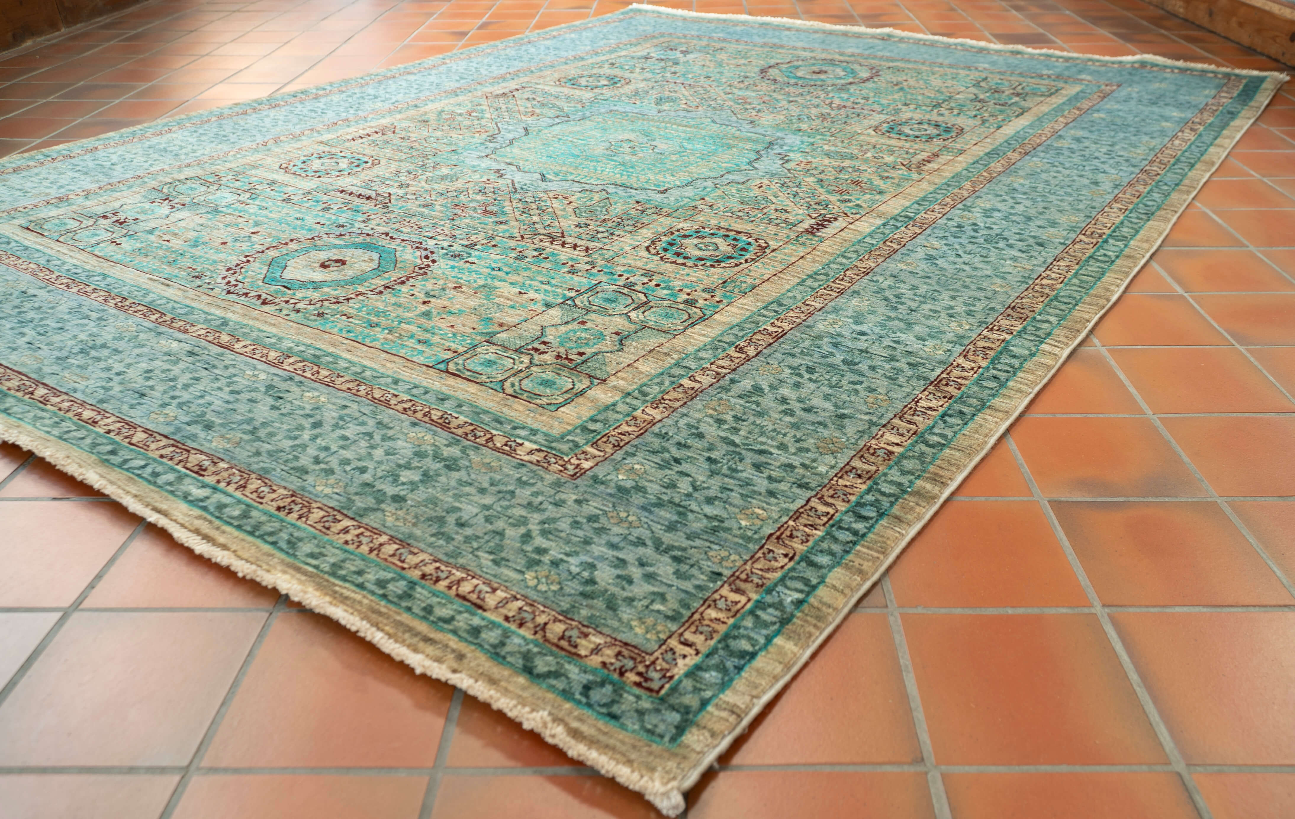 Elevate your space with our exquisite Handmade Fine Afghan Mamluk Rug. Crafted by skilled artisan weavers in northwest Afghanistan, it embodies ancient Egyptian design and boasts a unique colour palette. It is made from vegetable-dyed handspun wool and exudes practicality and durability while retaining a beautiful lustre. It is perfect for adding a touch of luxury and sophistication to any room.