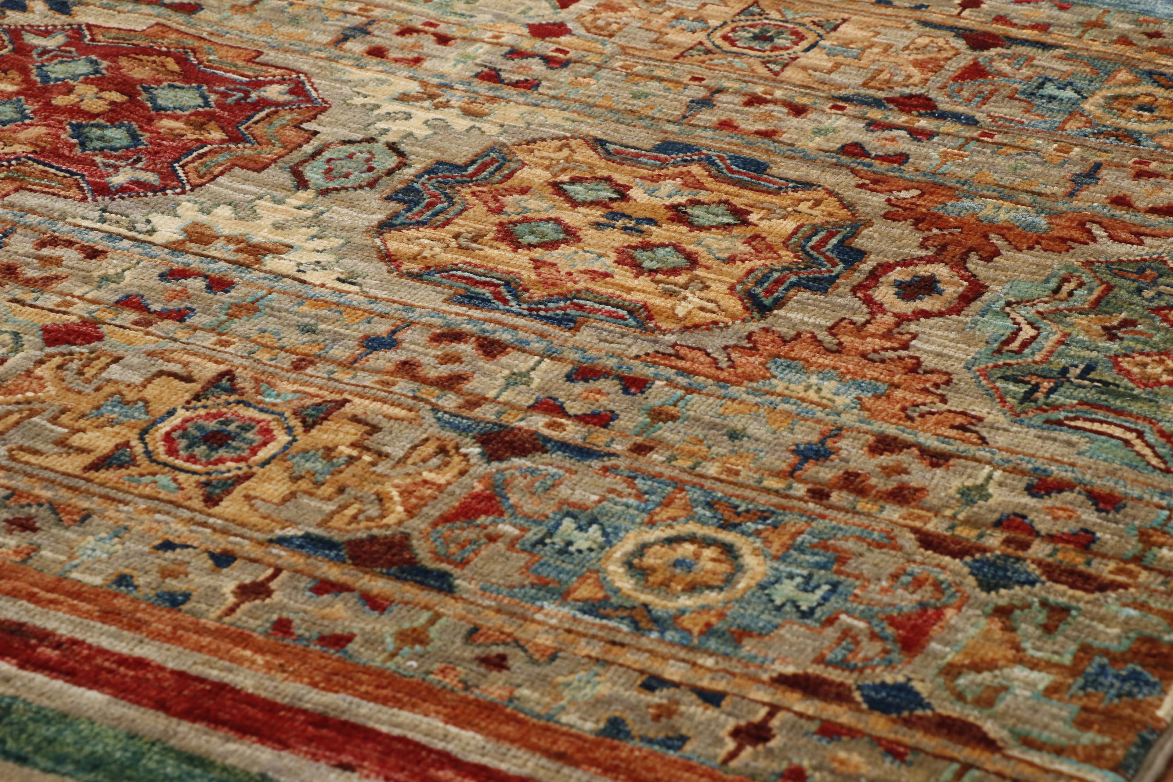 The mix of traditional and contemporary works well in these fine-quality Afghan Samarkand rugs and carpets. This piece is exceptionally wide for a runner, which is useful if you have a wide hallway. However, one of the advantages of this type of design is that it has no borders, so if you want it narrower, you can adjust it.