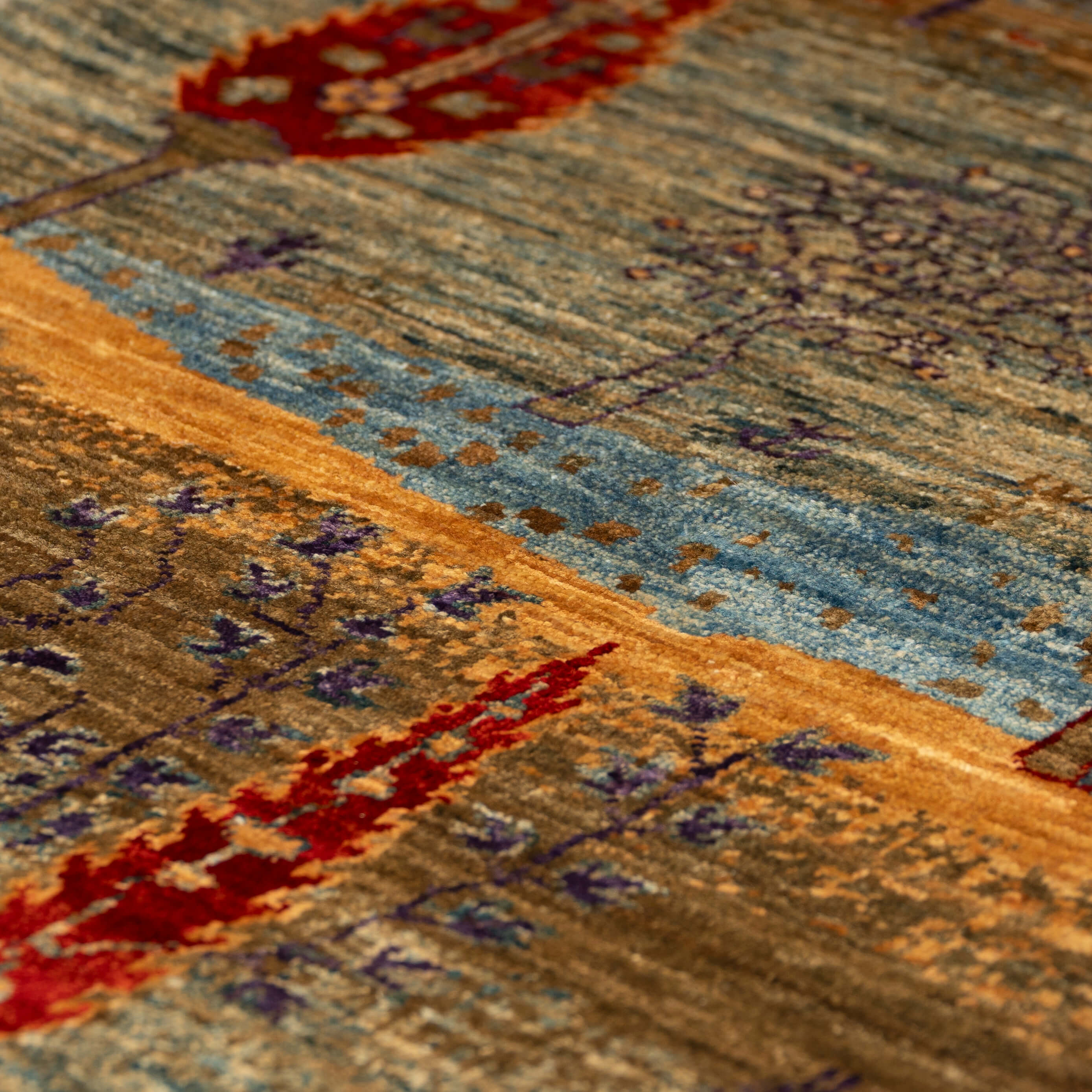 Expertly crafted in northwest Afghanistan, this Handmade Luri Gabbeh rug is a masterpiece of traditional weaving techniques. Handspun and dyed with natural vegetables, it boasts a colorful and unique design that adds character to any room. Practical and hardwearing, this contemporary piece is produced within a cottage industry to support skilled artisan weavers.