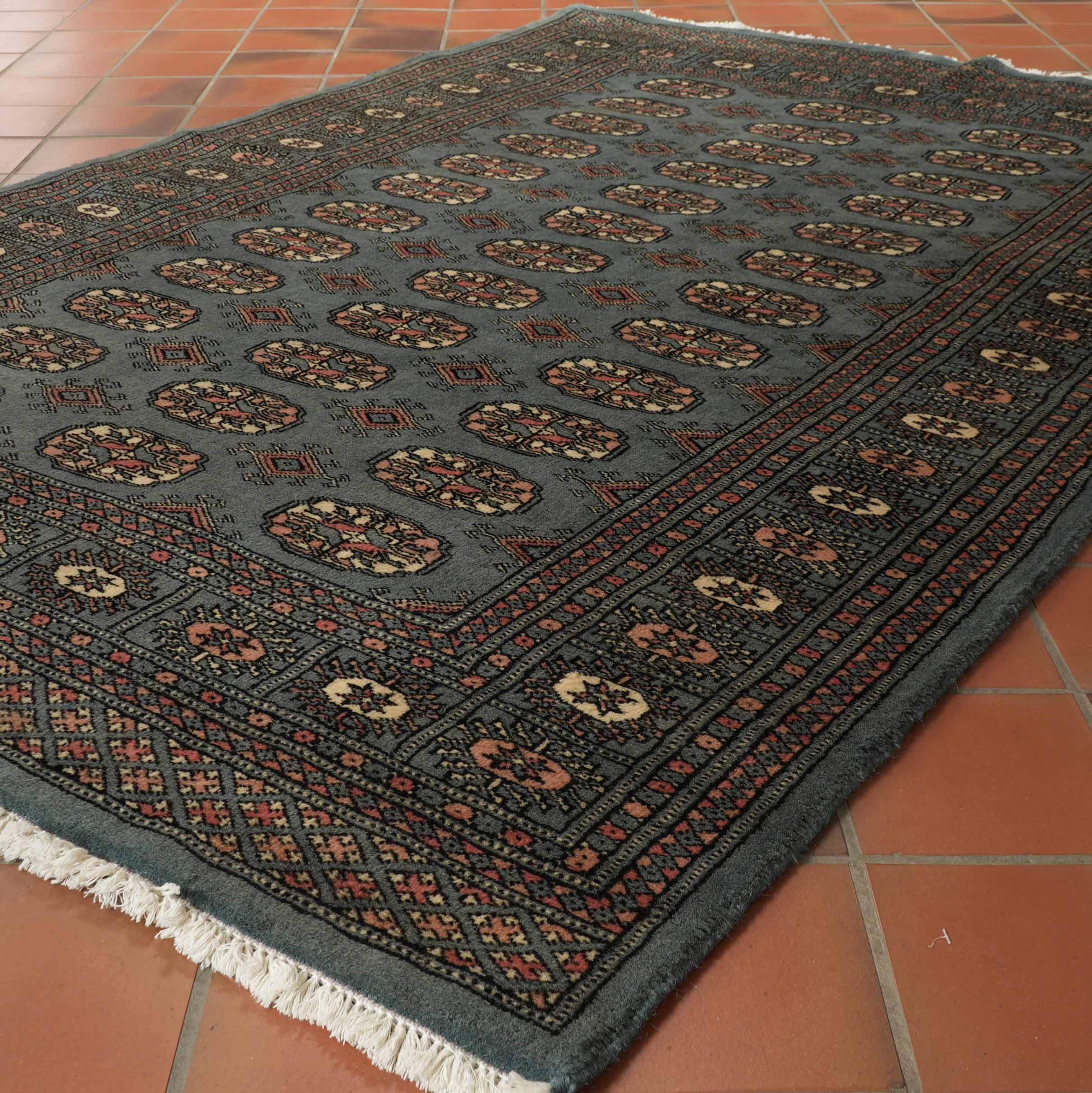 This Pakistan Bokhara rug is finely knotted in a traditional design using lovely, soft, silky wool. The Bokhara rugs are always made with a wool pile, but unfortunately, some people try to pass them off as silk. Handmade Bokhara rugs are incredibly good value.