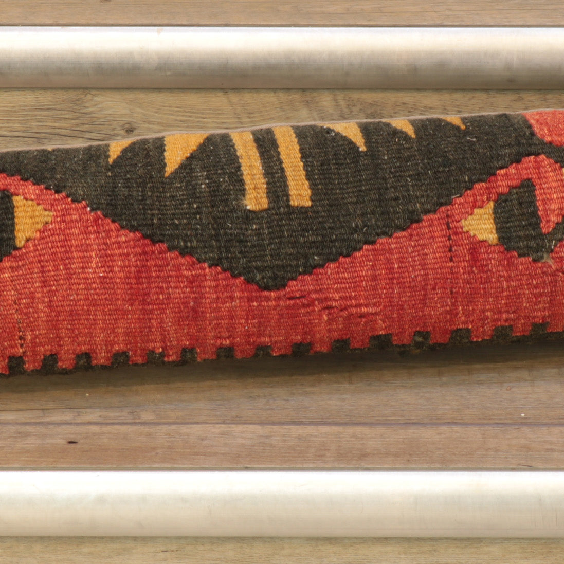 We are fortunate to have these draught excluders on the website; the old kilims are becoming harder to find and quite desirable. This lovely draught excluder is made from a salvaged piece of Turkish Kilim. It is single-faced with a faux suede/linen backing and is fibre-filled. Each draught excluder is a unique item and is not repeatable.
