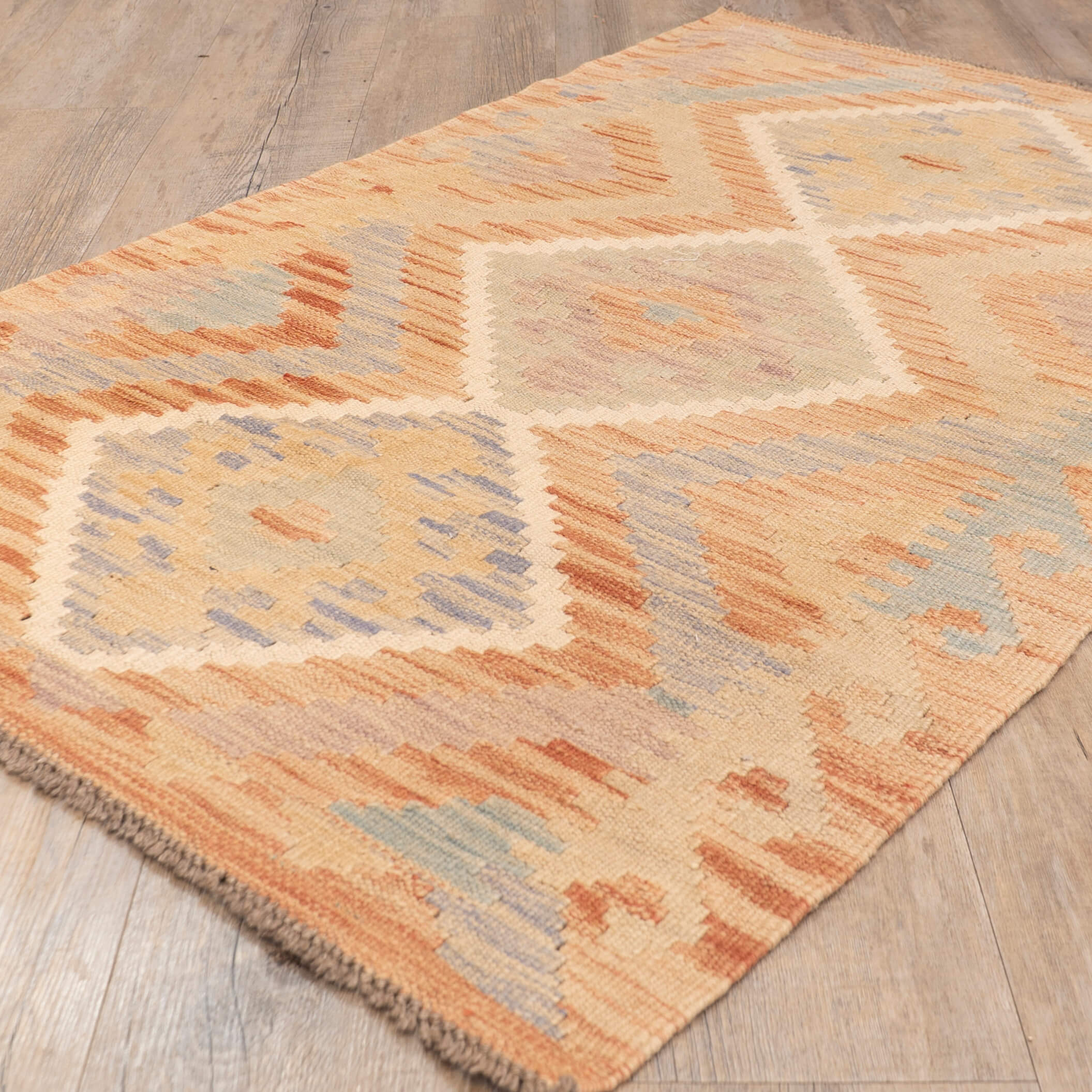 Kilim rugs are serviceable and practical, giving the owner the advantage of being made from one of the most beautiful natural yarns, 'wool', and are often completely reversible. The vegetable-dyed wool is a beautiful natural fibre that usually contains high levels of lanolin, making it very practical. Kelim is woven using hand-dyed yarn in both the warp and the weft. The patterns produced are often identified by the region in which they are made, and the designs are passed down through generations from mother to daughter.