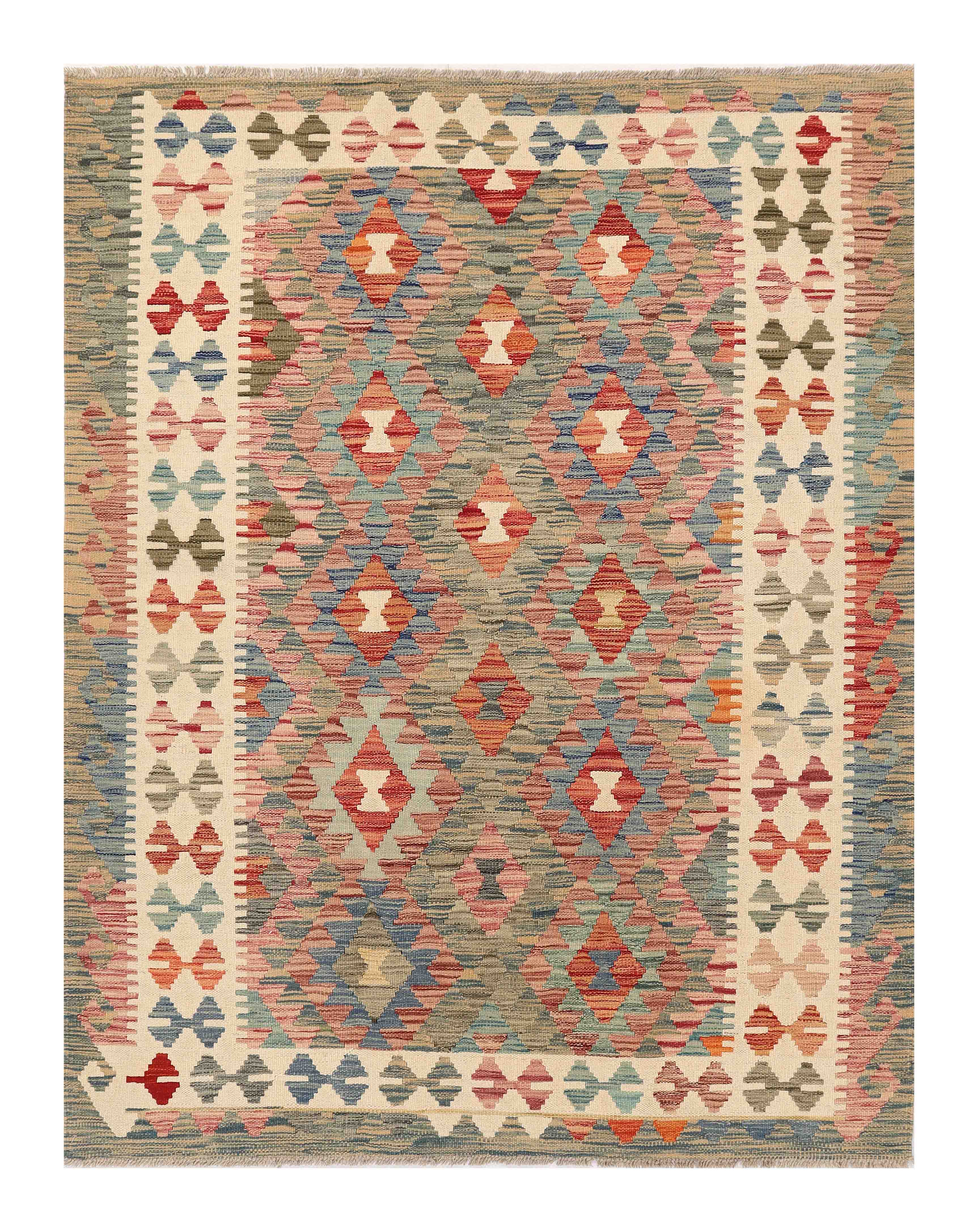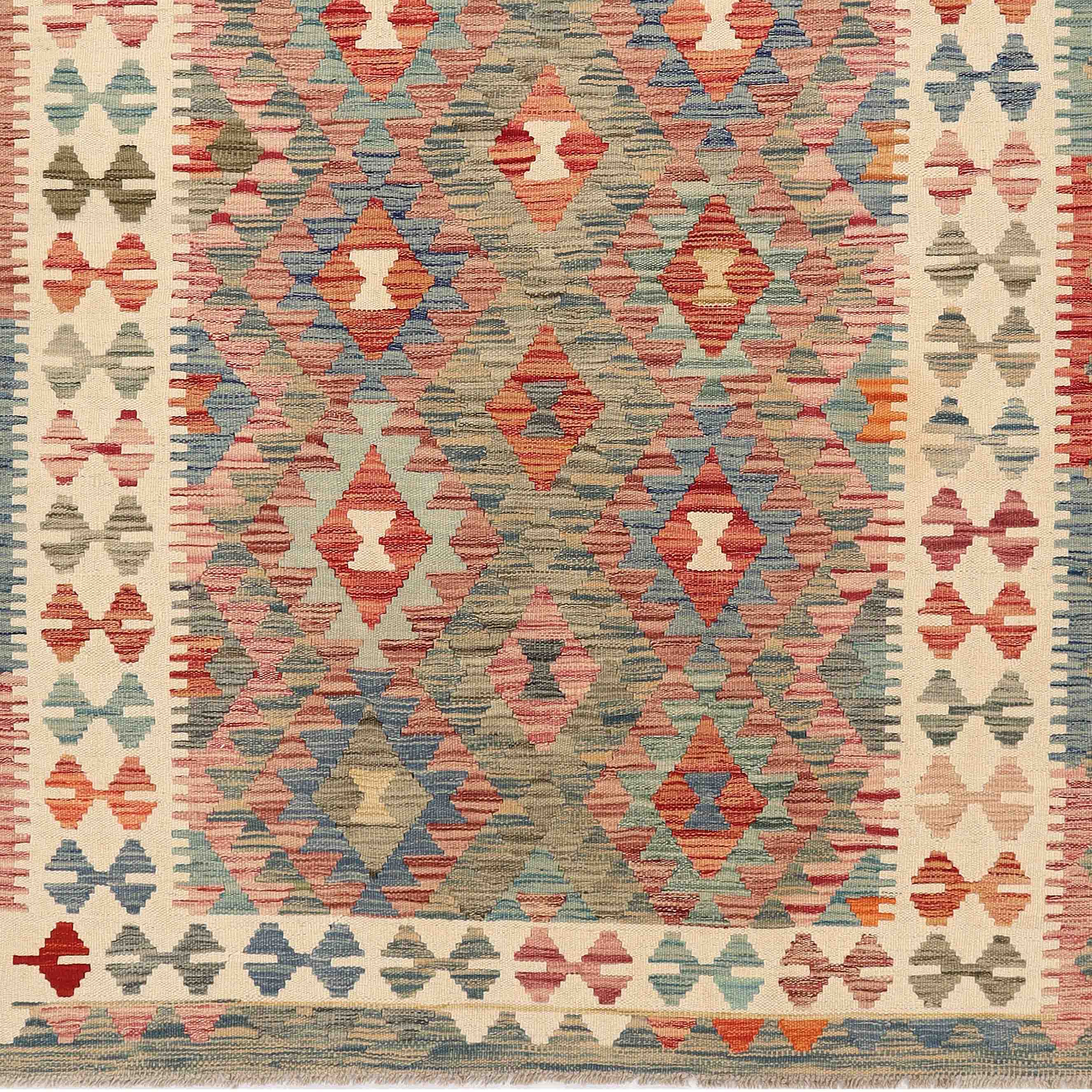 You can buy this handmade carpet before it arrives in our Tewkesbury showroom. The rug has not yet been received into our stock at Tewkesbury and has yet to be photographed at the showroom. The images may not be as good as our normal images, but they are photographs of the finished rug. Once the carpet has been transferred from our warehouse, we will rephotograph it. Discover the charm of Afghan craftsmanship with this handmade Kilim. It’s durable and cosy, made from vegetable-dyed wool, even with underfloor heating. Its soft colours and reversible design make it perfect as a rug,...