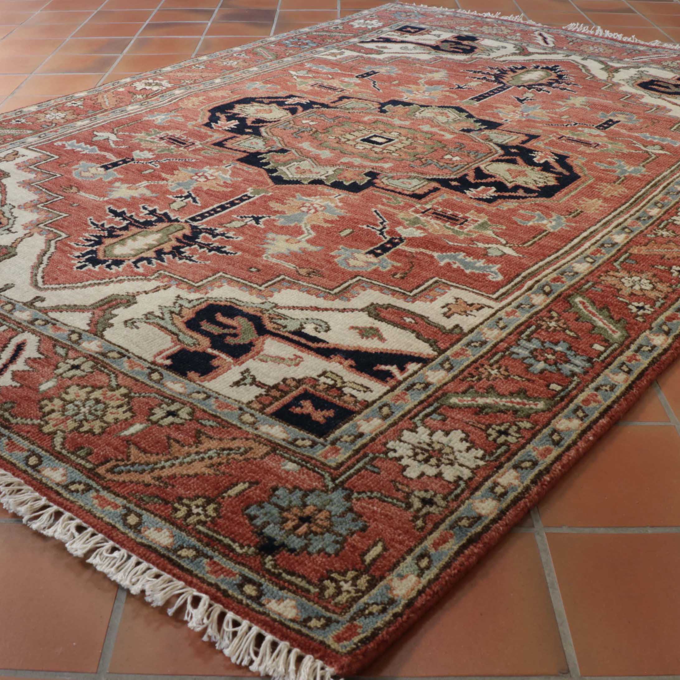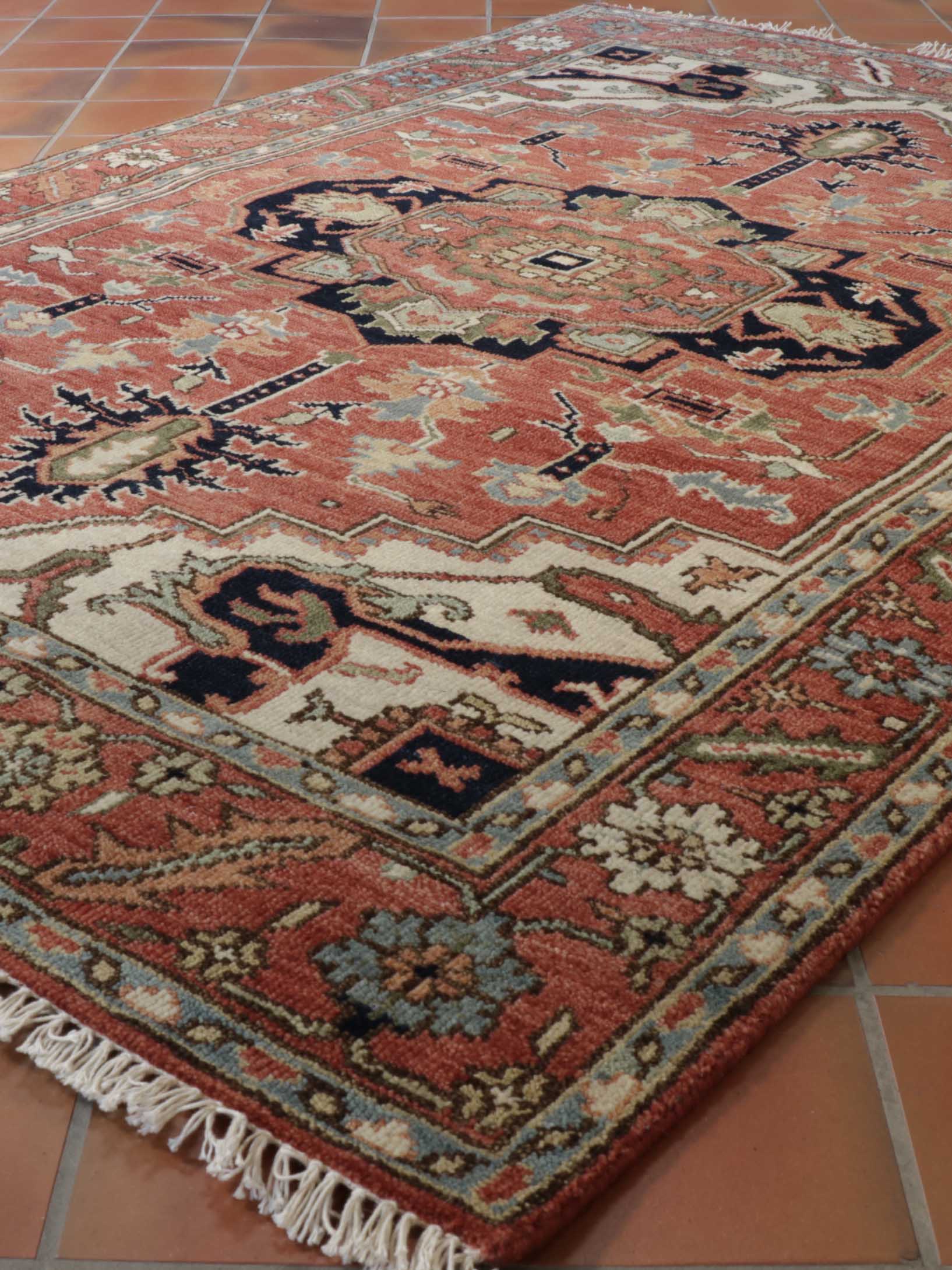 The designs in Heriz carpets are mainly geometric, bold, and inviting, with a large medallion centralised within. As with most high-quality weavers, the designs are passed down from generation to generation and often woven from memory.