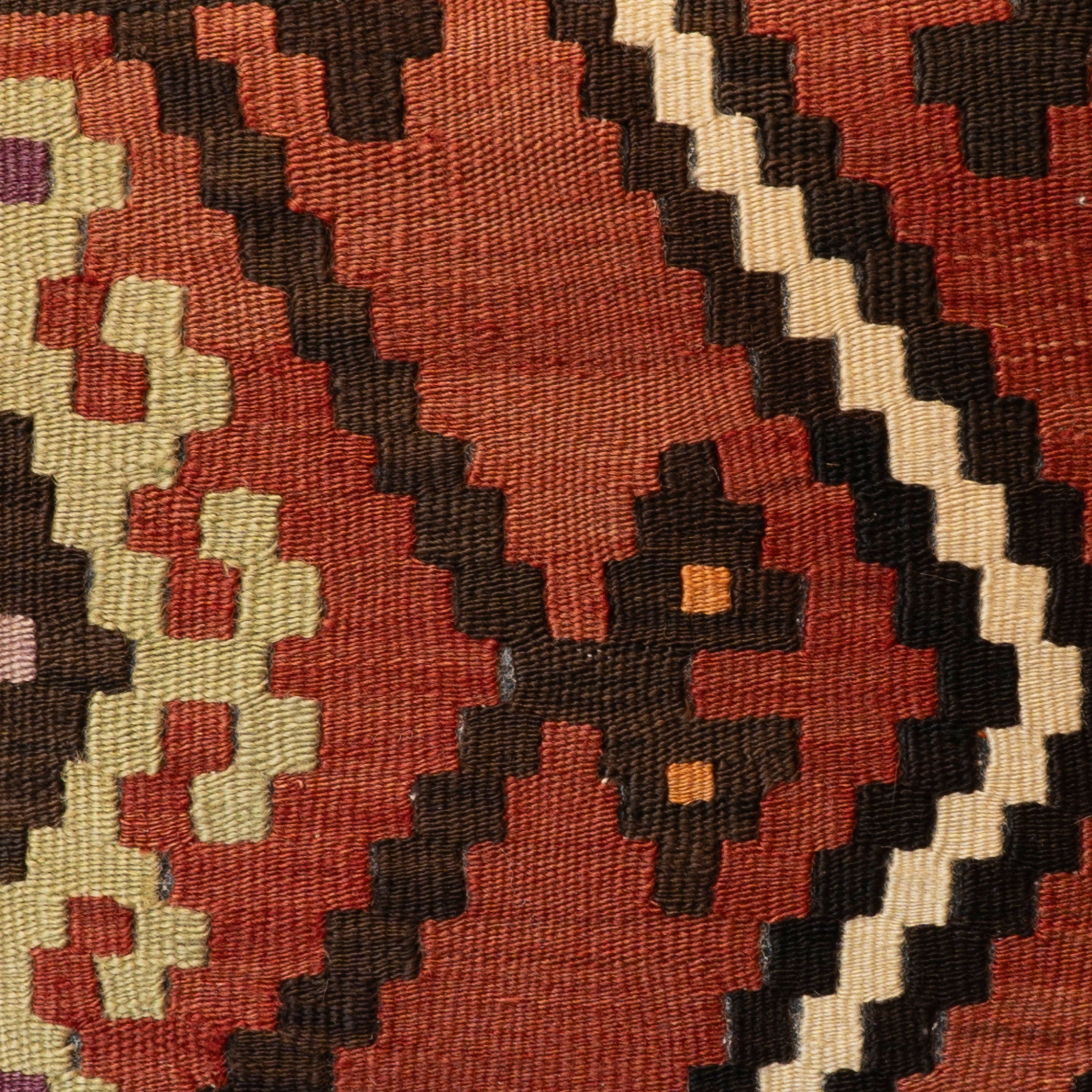 Our collection of kilim cushions offers great colours, designs, and textures. The pieces are often taken from a larger old, sometimes antique kilim, cleaned and sorted to repurpose and salvage a treasured fabric that otherwise could be lost. The pattern may be cut in unusual and interesting ways to ensure as much of this precious resource can be saved as possible. In addition, the cushions are fibre-filled, making them more suitable for individuals with allergies to feather fillings.