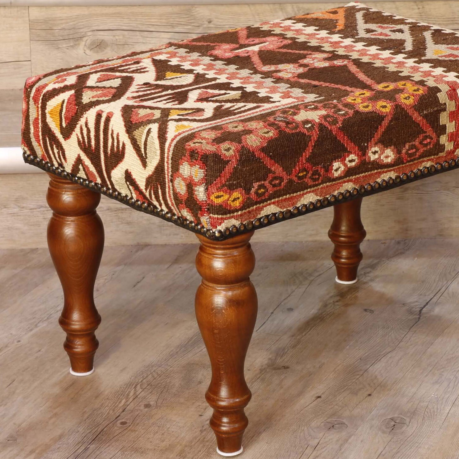 Our furnishing collection utilises pieces often salvaged from old Turkish kilims. As an expensive furnishing fabric, we ensure waste is kept to the absolute minimum. This desire to preserve every usable piece enables us to produce some smaller pieces, such as draught excluders or small cushions. With the footstool, the fabric cut often creates an interesting look, as the pattern may be offset rather than centred, making pieces unique. We also have a limited number of unique chairs, with no two pieces ever identical.