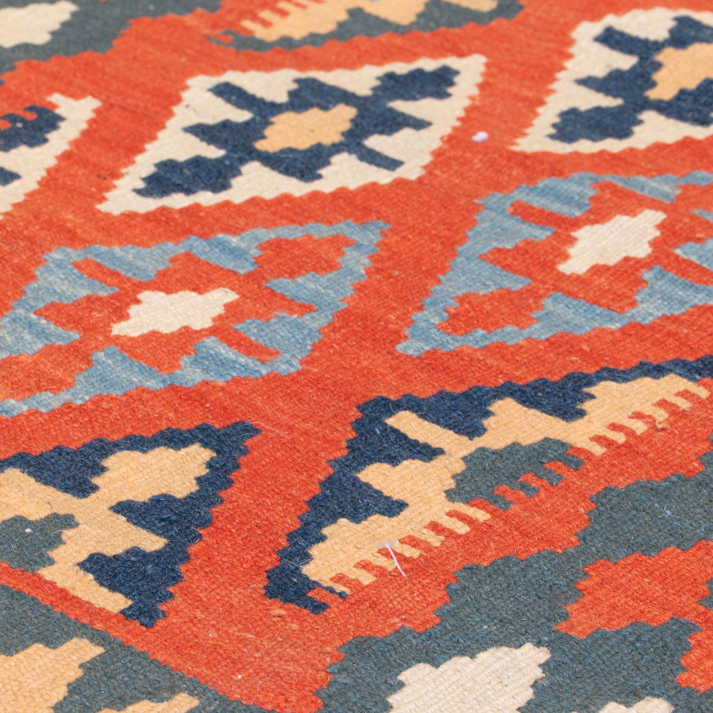 Kilim rugs are both serviceable and practical, offering the owner the advantage of being made from one of the most wonderful natural yarns, wool, and often being completely reversible. Vegetable-dyed wool is a beautiful natural fibre that usually contains high levels of lanolin, making it very practical. Kelim are woven from hand-dyed wool in both the warp and the weft. The patterns produced are often identified by the region where they are made, and the designs are passed down from mother to daughter through generations.