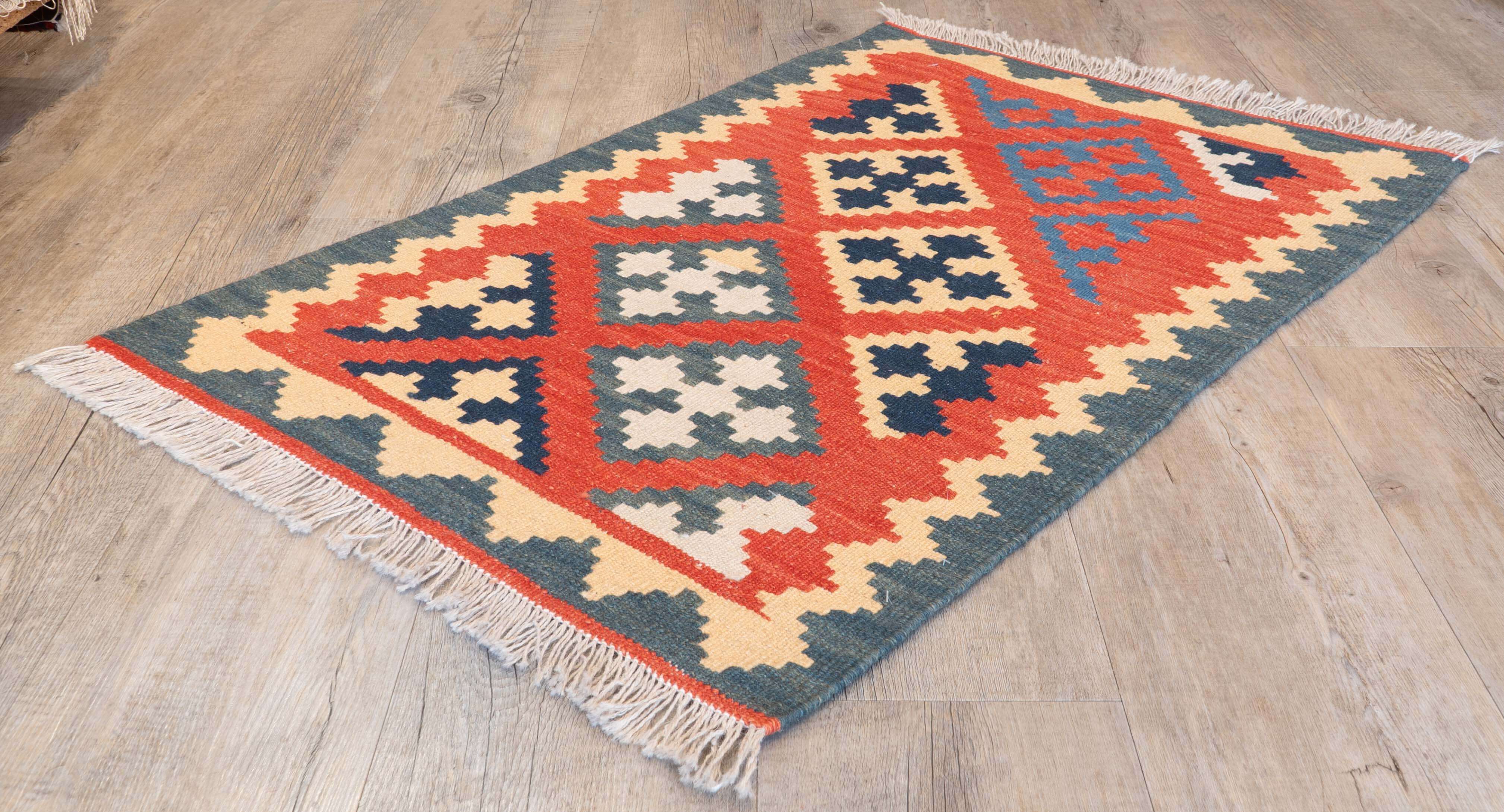 Discover authentic Qashqai craftsmanship in this stunning handwoven kelim. Rich blues, greens, and terracotta tones blend seamlessly across traditional geometric patterns that tell a story of cultural heritage. Crafted entirely from 100% wool, this reversible textile adapts to your décor—flip it to refresh your space instantly. Durable enough for everyday use yet refined enough to become a focal point, it's the perfect choice for those who value genuine artisanal quality and timeless design over mass-produced alternatives.