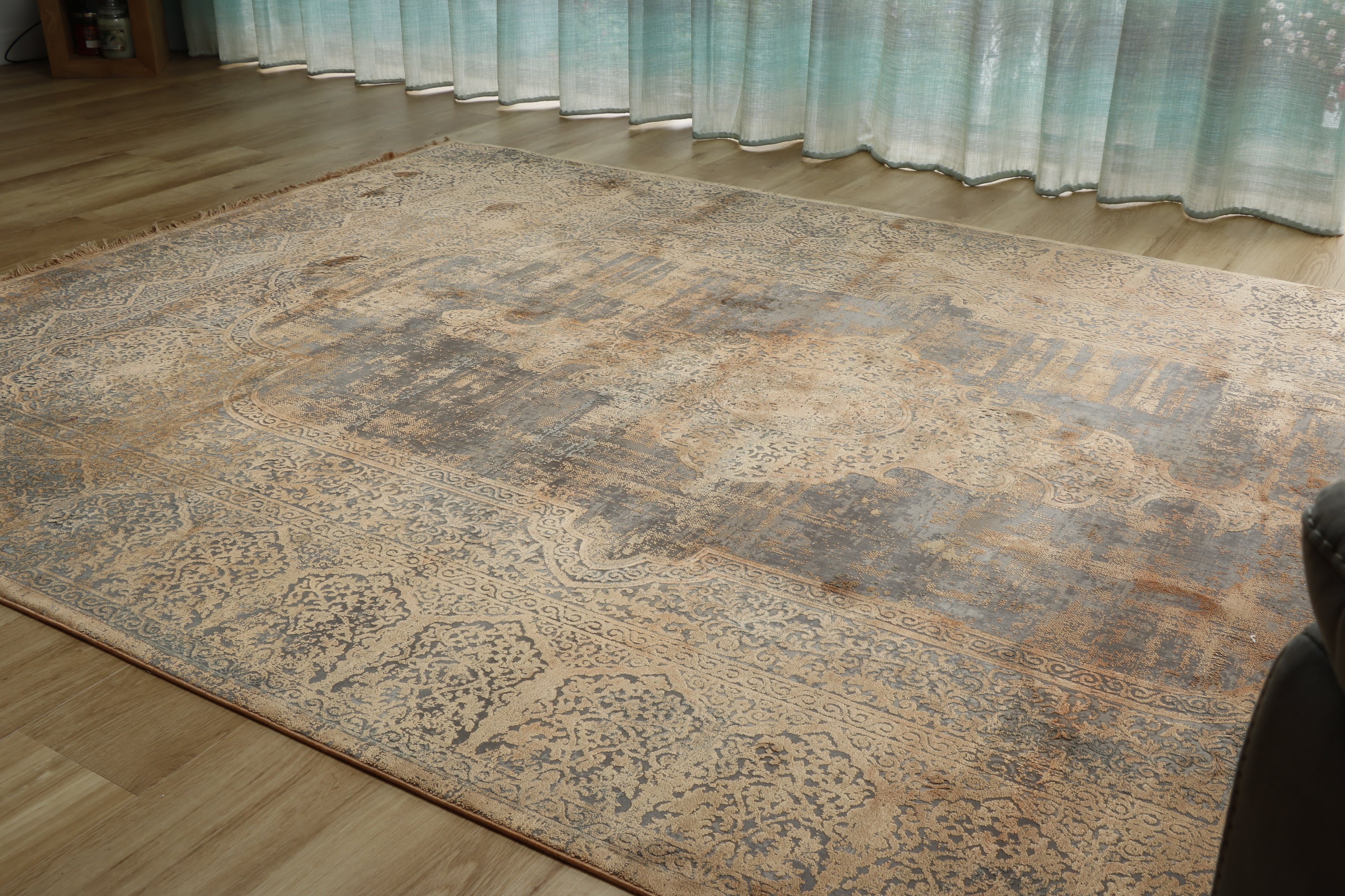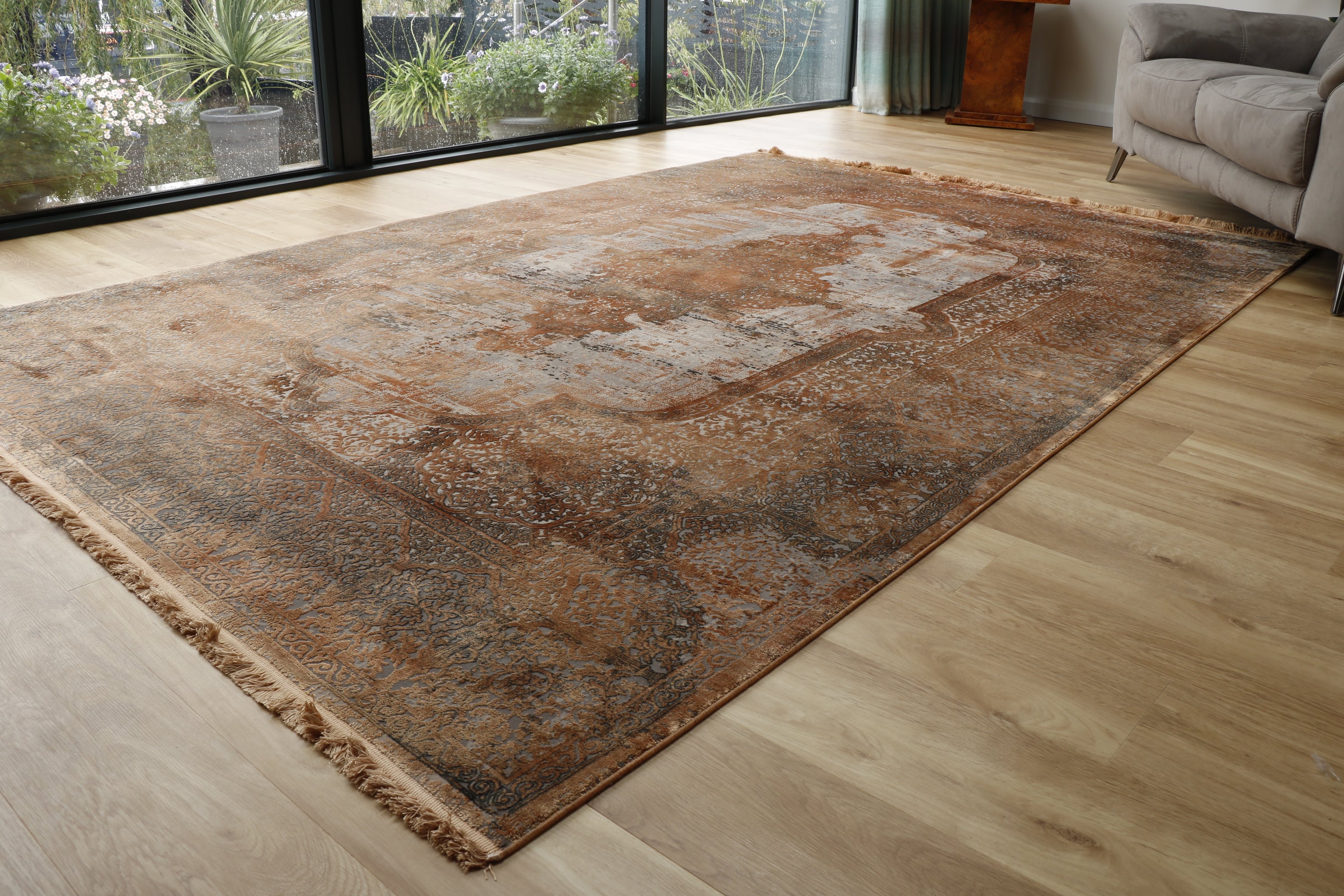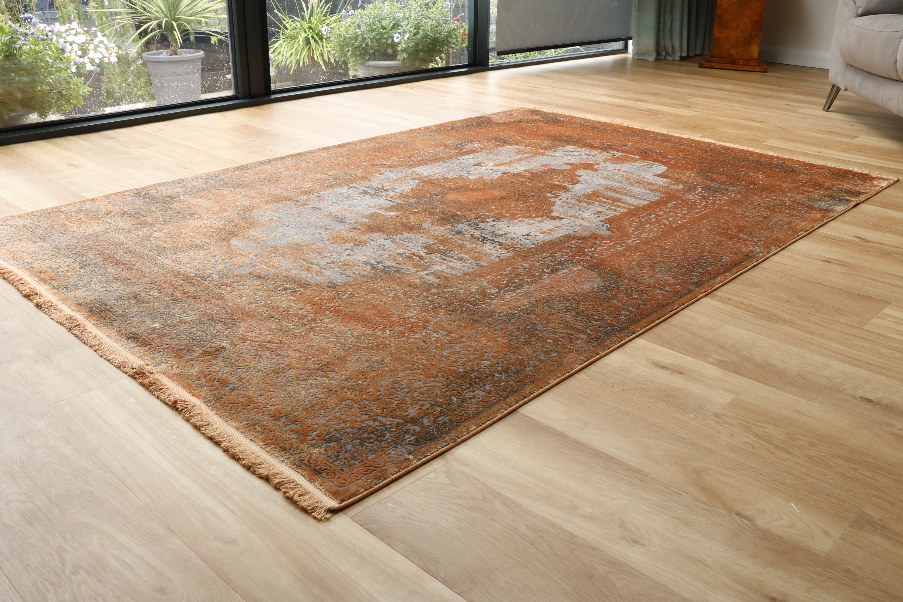 This machine-loomed Gooch rug is possibly one of the finest manufactured rugs we have come across, being very fine and incredibly silk-like. The designs are usually modern. However, some old Persian designs have been used with a contemporary colour palette, achieving a very subtle yet sophisticated look. These area rugs are very inexpensive and represent excellent value for money.